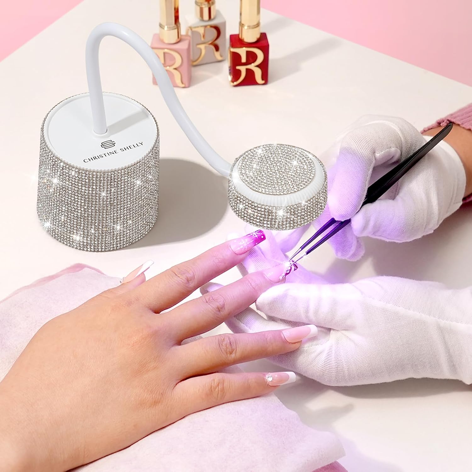UV LED Nail Lamp, Mini UV Light for Gel Nails Polish, Rechargeable LED Flash Cure Nail Dryer, Quick Drying Goosenecks UV Nail Lamp for Home Nail Salon DIY Manicure, White Diamond