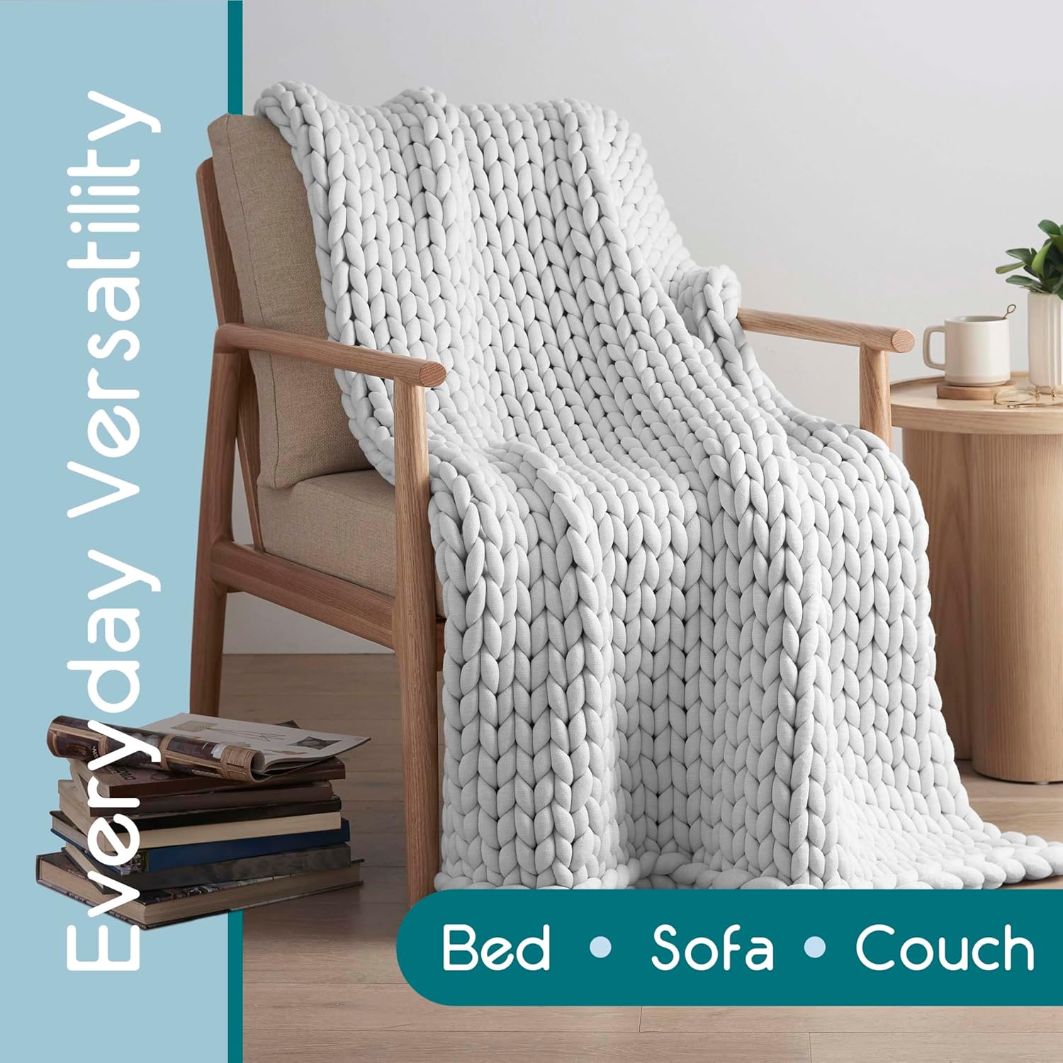 Easy Care & Maintenance: This weighted blanket is thoughtfully designed for convenience, featuring a machine-washable construction that ensures effortless cleaning. Keep it looking and feeling fresh while maintaining its ultra-soft texture, durable chunky knit design, and long-lasting structure. Perfect for busy lifestyles and everyday use.