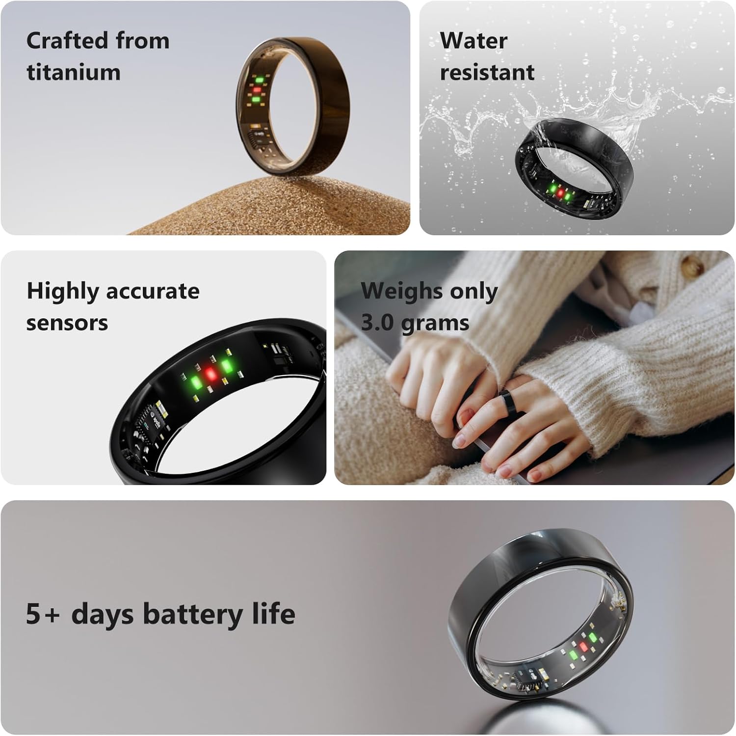 Vic Ring, Ultra-Light Titanium Smart Ring, 7-Day Battery Life, Fitness/Sleep/Stress/HR Tracker for Women & Men, No APP Subscription Fees, IP68 Waterproof, iOS & Android Compatible (Size12, Black)