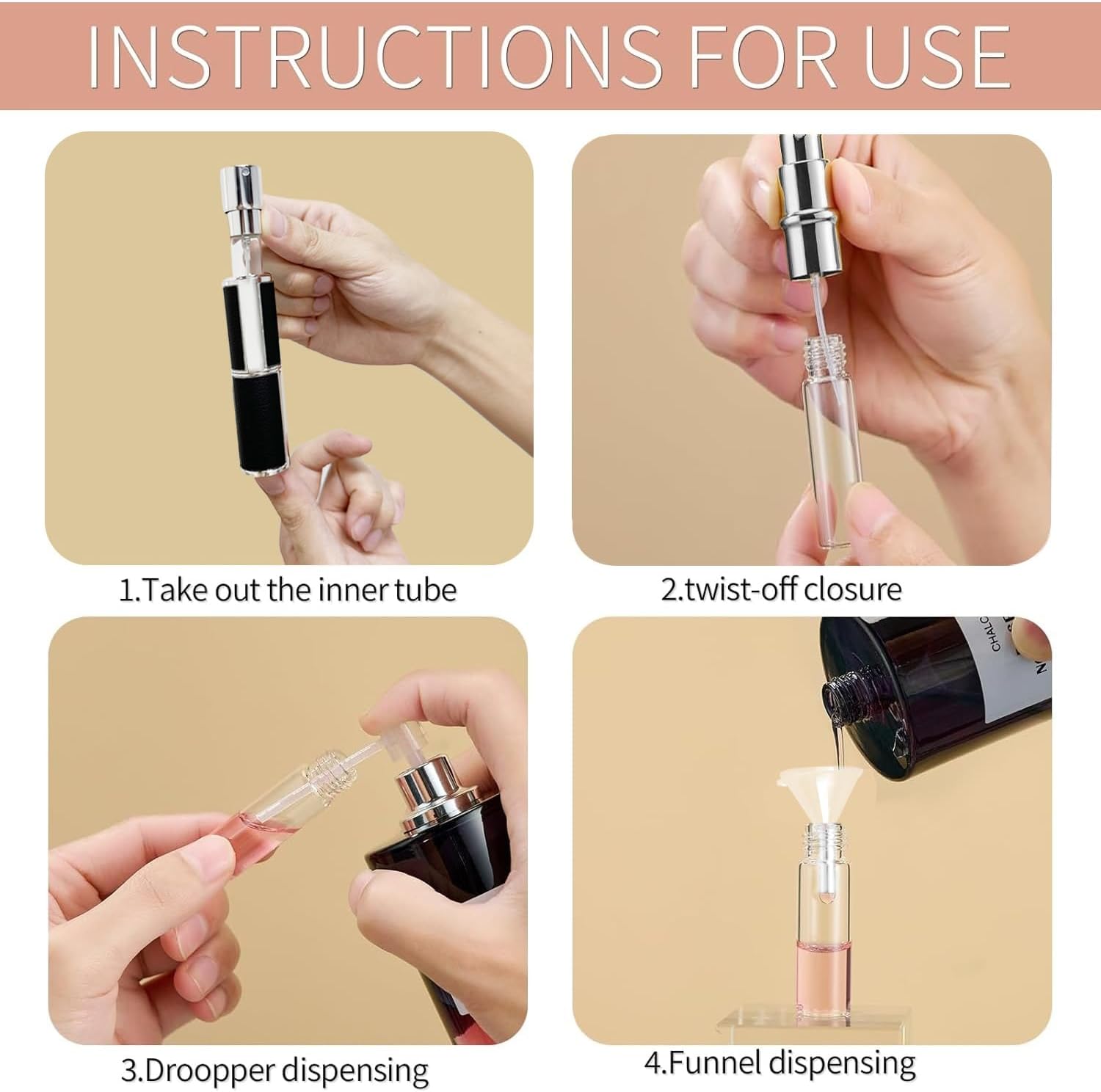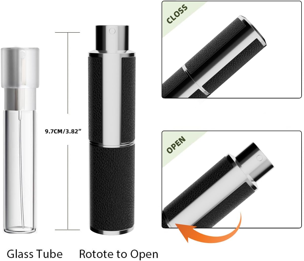 【No-Leak Design & Easy Refilling】 ✔️ The unique leak-proof seal and secure twist-lock mechanism prevent the perfume from evaporating and spilling, and it will not spill in the bag even if it is shaken violently ✔️ Includes 1 funnel, 1 dispenser tool for mess-free refilling from large perfume bottles—saves every drop of your favorite scent!