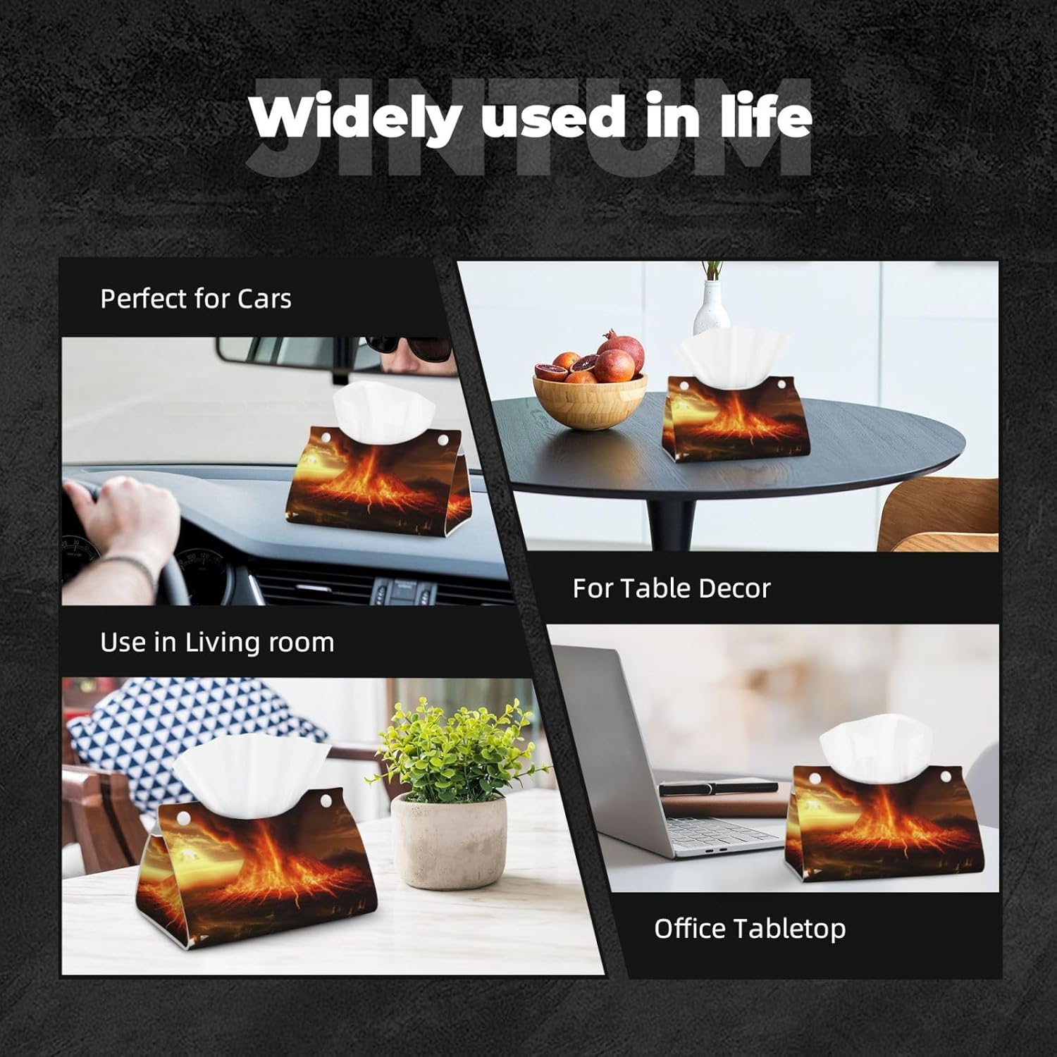 Convenient To Store: Made with premium quality PU leather. The Volcano tissue box case Stylish Tissue Box Holder can be foldable reusable for easy storage, also can be effortlessly restored to its original shape. Easy to cleaning, just wipe with wet cloth