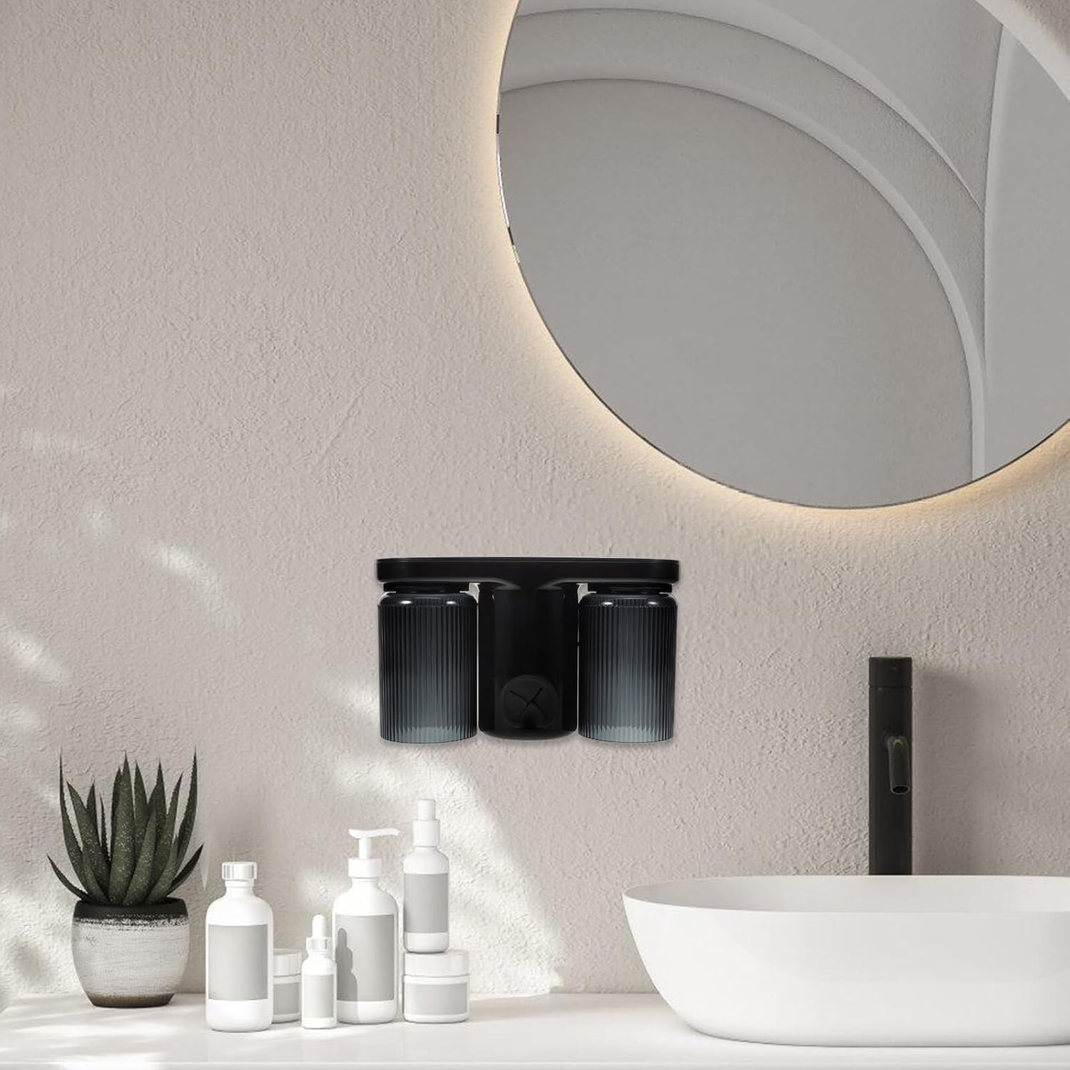 Family friendly dual cup design: the dual cup feature is for families, providing ample space for everyone’s toothbrushes and rinse cups in one convenient location,wall mounted toothbrush holders,wall mount toothbrush holder