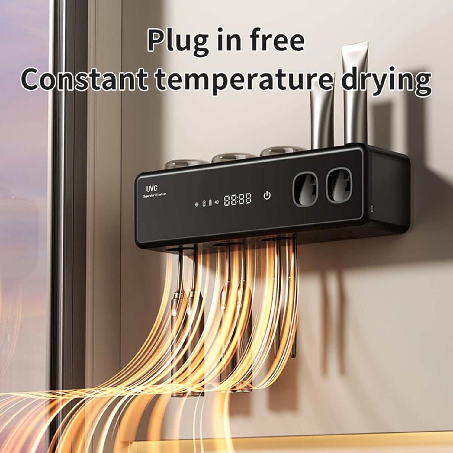 24-Hour Smart Cycle Cleaning: The bathroom toothbrush holder is equipped with a high-definition LCD visual display, which shows the working status at a glance. Cycle cleaning for 1 minute every 6 hours, turn on the 10-minute constant temperature drying mode in plug-in mode to meet different brushing habits, and 24-hour intelligent protection