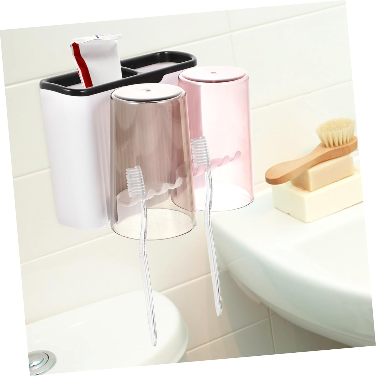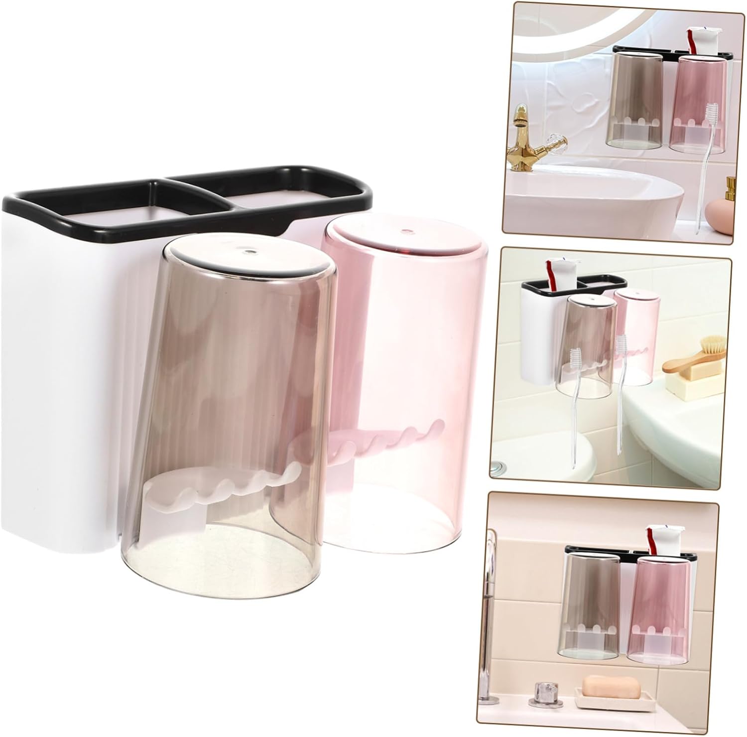 Bathroom toothbrush organizer–the cup can be turned upside down to allow the remaining water to flow out keep your toothbrush and mouthwash cup clean at the same time,toothpaste holder