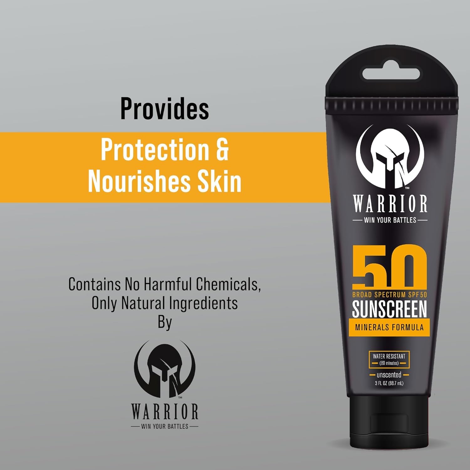 WARRIOR – WIN YOUR BATTLES- SPF 50 Sunscreen Lotion – 80 Minutes Water Resistant, Reef Safe, Unscented Lotion Non-Nao Zinc & Non-NanoTitanium Sunscreen with Mineral Formula – 3 Fl. Oz