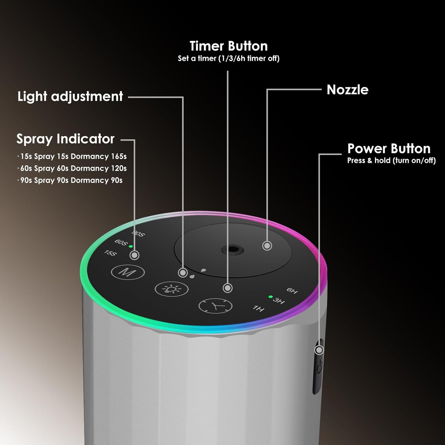 【Long-lasting Battery & Smart Control】Charge via USB-C, car charger, or power bank. A full 3-hour charge provides 24 hours of continuous use or 48 hours in eco mode. Customize mist levels (10s/30s/90s) and countdown set timers (1H/2H/3H) to suit any space—from cozy cars to large living rooms (up to 600 sq. ft!). Save oil with precise control—no waste