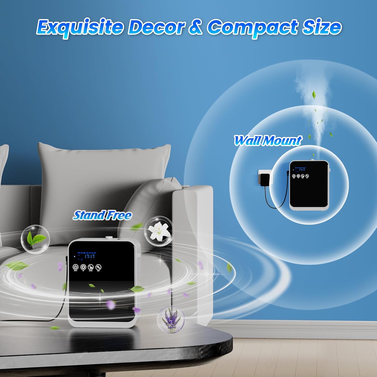 【 Complete Kit for Immediate Use】 – The Diffuser Scent Machine No need extra-free setup and includes: 1 x Diffuser Machine, 1x Cord Adapter , 1 x User Manual , 1 x APP Manual ,1 x 150ml Empty Bottle,1 x Replace Atomizer Core, 1 x Adhesive Hooks Plate, 1 x Screw Fittings. Tips: the adapter suitable for wide voltage range 100-240V, After unboxing test,If any issue occurs,so that you can get for quick support from seller.