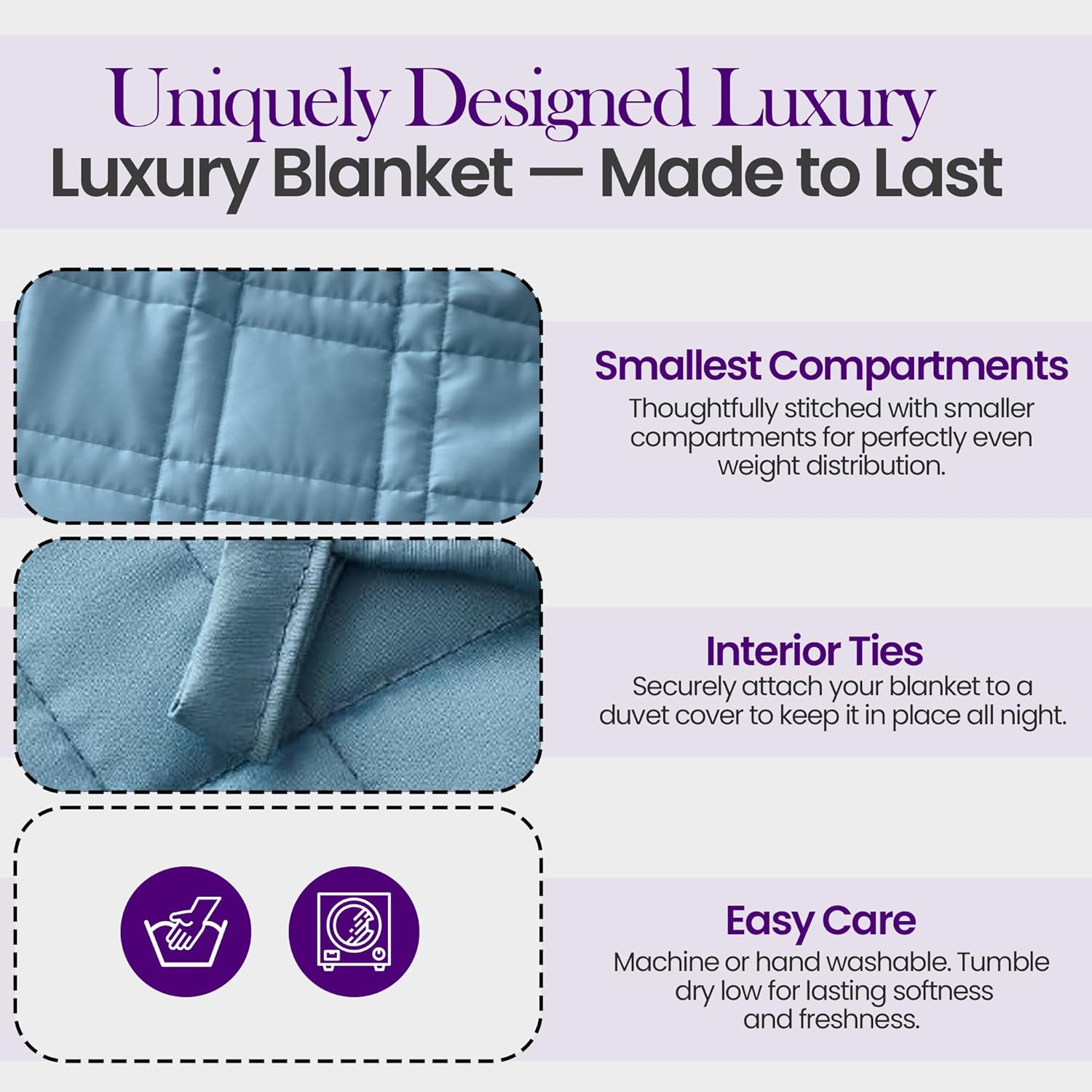 This adult weighted blanket is a thoughtful gift with easy care machine washable materials and dependable queen size comfort for relaxation