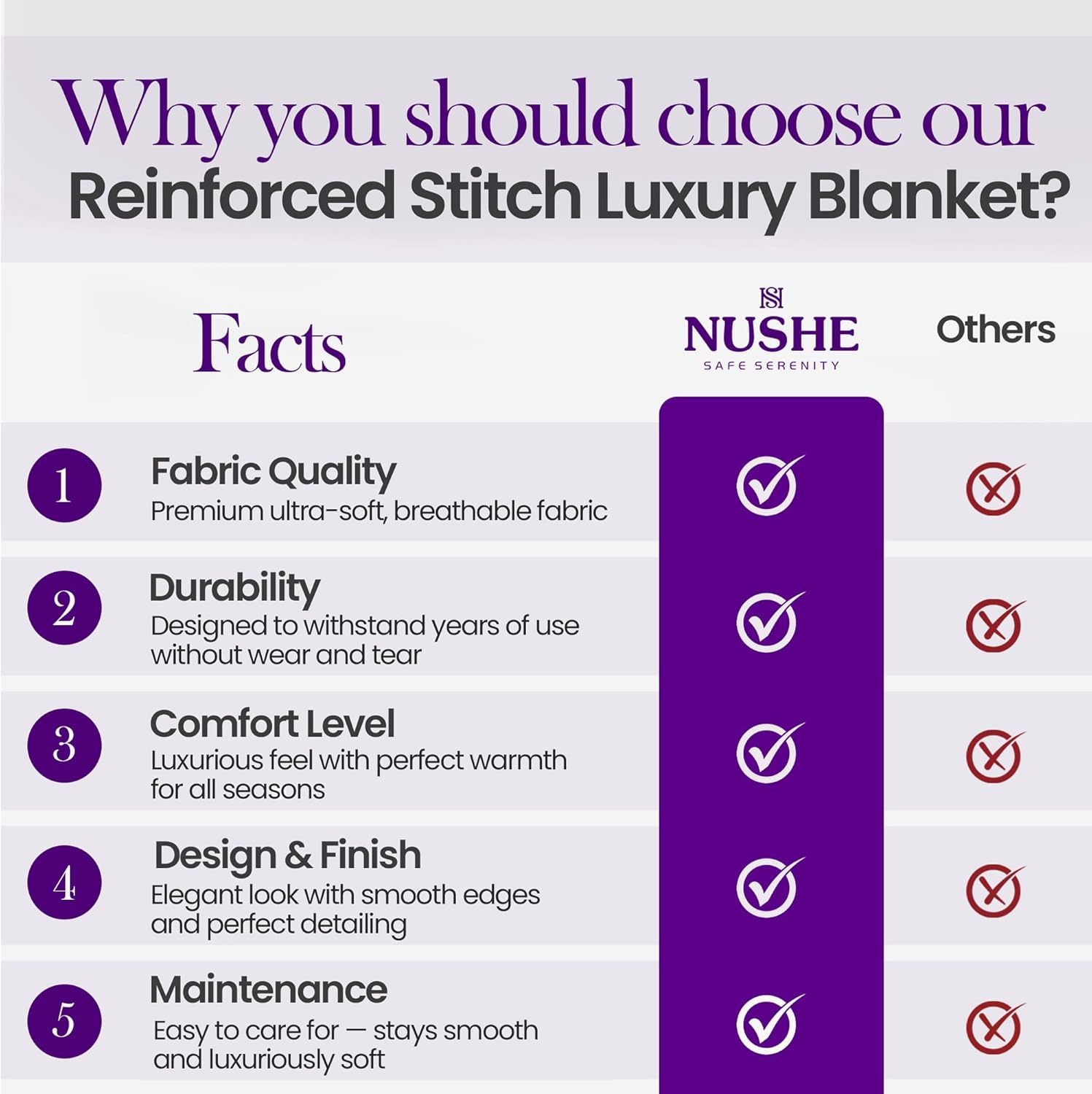 At NUSHE, we believe that sleep is more than just a routine—it’s a moment to recharge and find comfort. Our weighted blankets are thoughtfully designed to promote a calming bedtime experience, helping you feel at ease, settle down naturally, and enjoy a peaceful night’s rest.