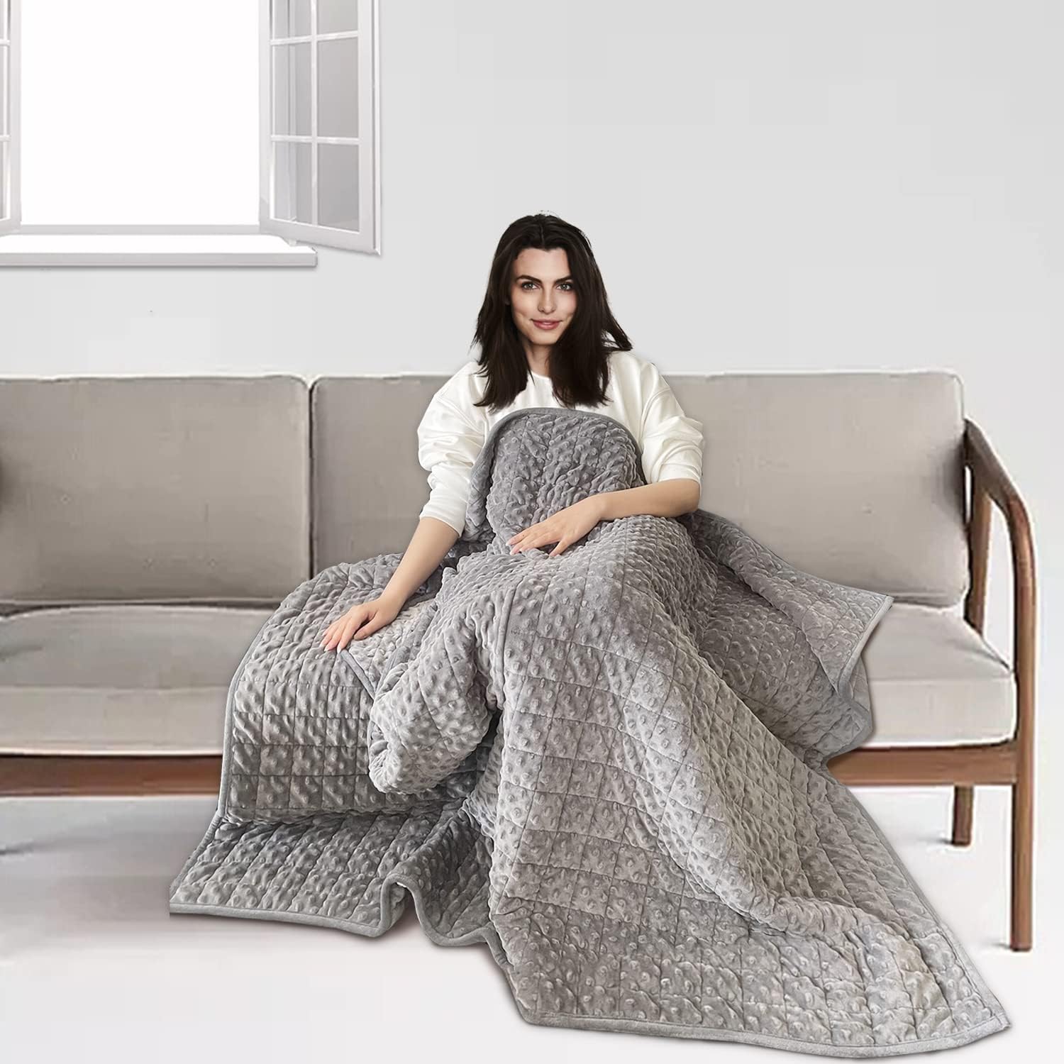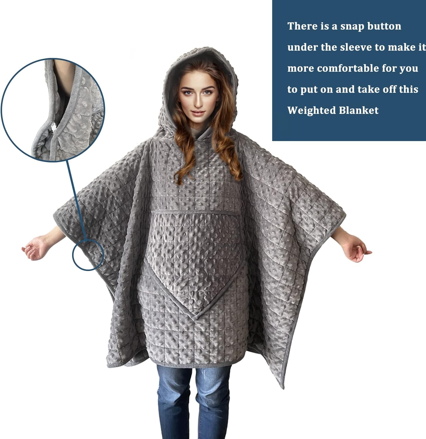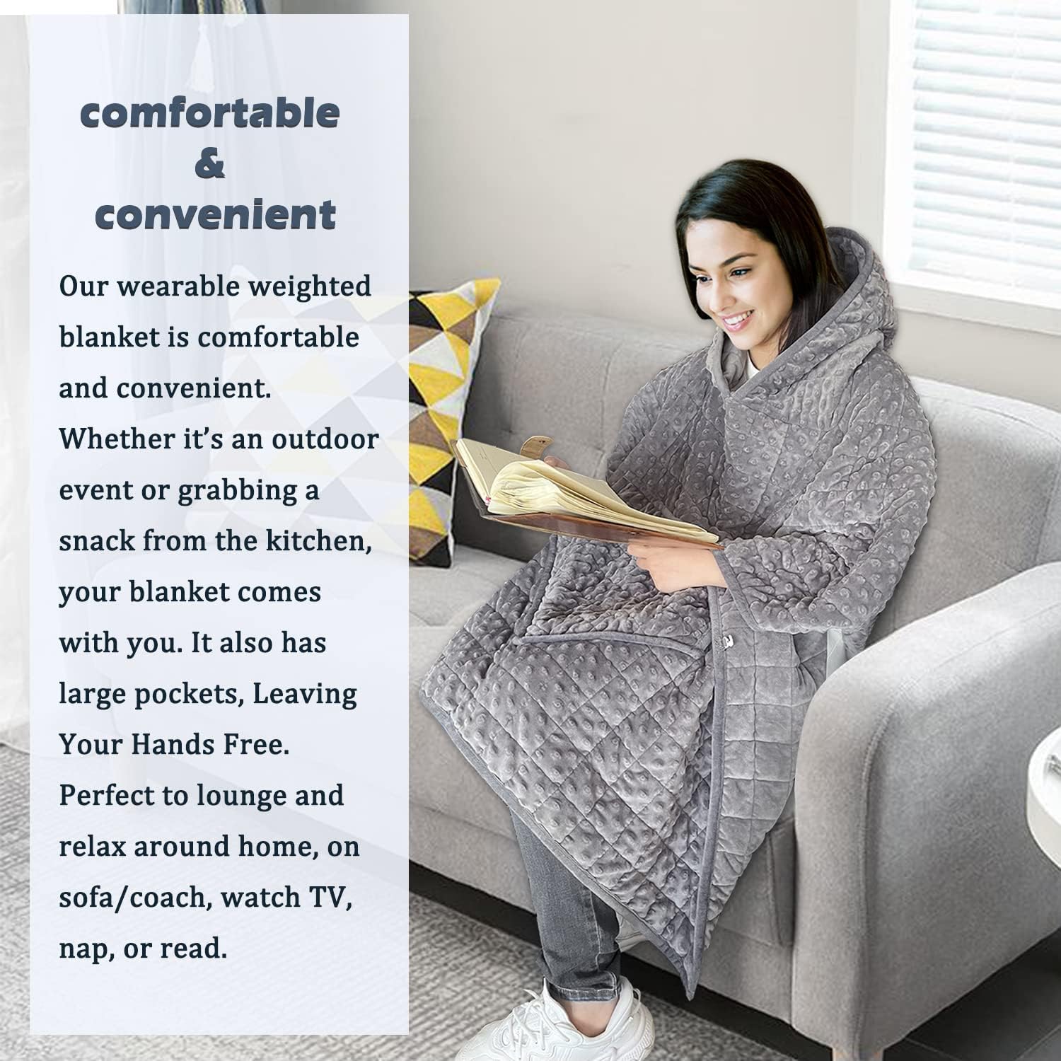 Weighted Blanket, Wearable Heavy Blanket 10lbs(57.4”x47.2”) Grey for Adult, Soft Material with Premium Glass Beads for Better Sleep