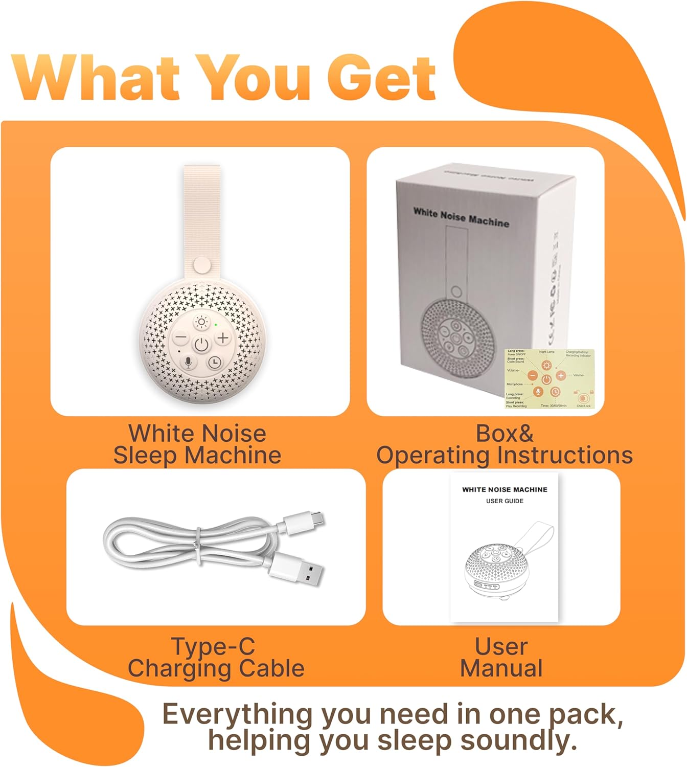 【Duration and Portable】The sleep sound machine for adults weighs only 120g, Palm-sized, compact and elegant designed, easy to carry. FCC/CE/RoHS certified. ensuring long-lasting use and not easily damaged. The sound machine for sleep also includes a strap for attaching to the pram, making it easy to carry around.