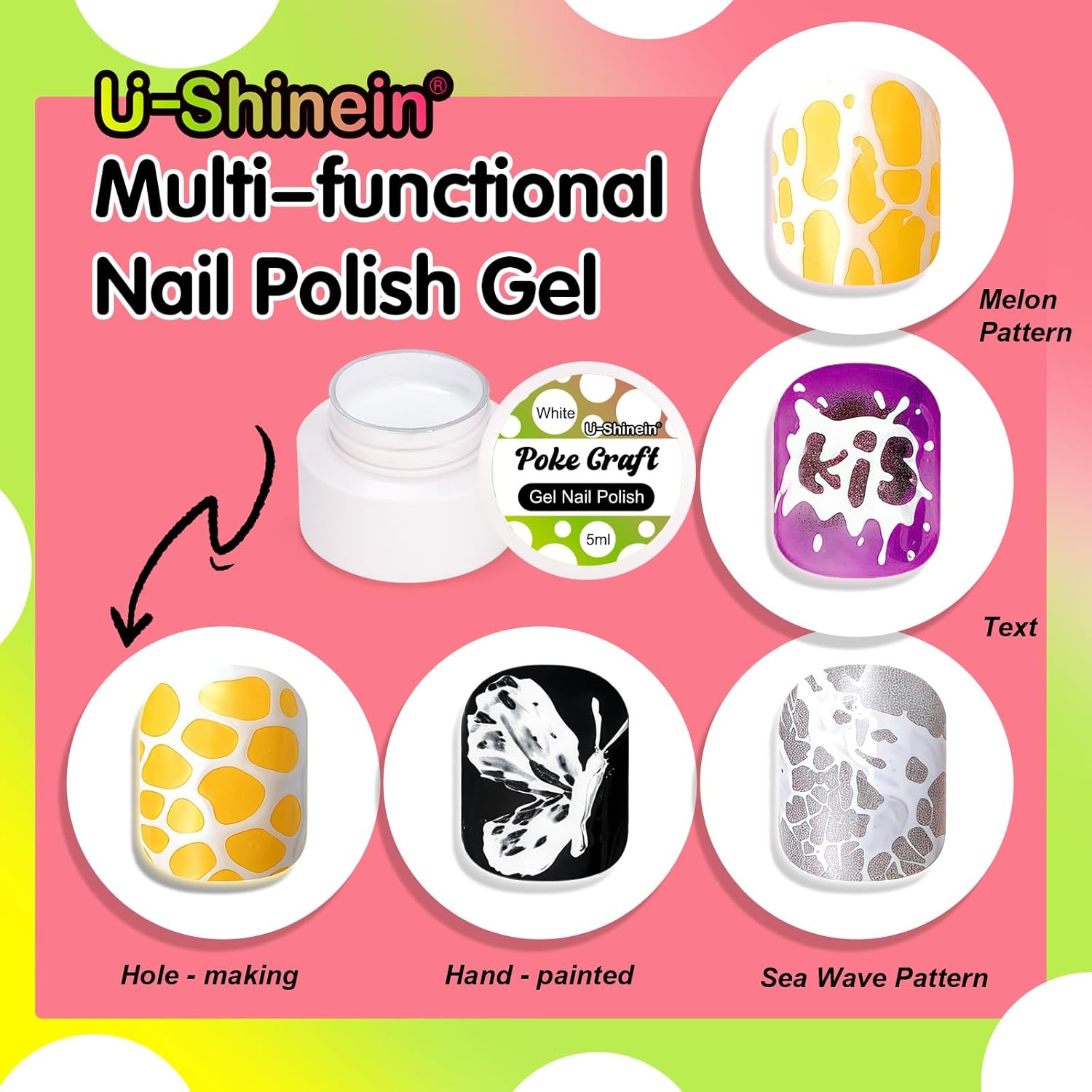 Newly Upgraded Nail Art Creative Gel:Experience the fun of poking nail gel open and DIY your own nail art. The newly upgraded multi-functional nail gel is extremely fun. It’s both interesting and creative to poke regular holes in the nail with a wooden stick. It is possible to create regular or irregular hollow design nail art decorations. It is not just a nail product—it is a fun way to personalize your look!
