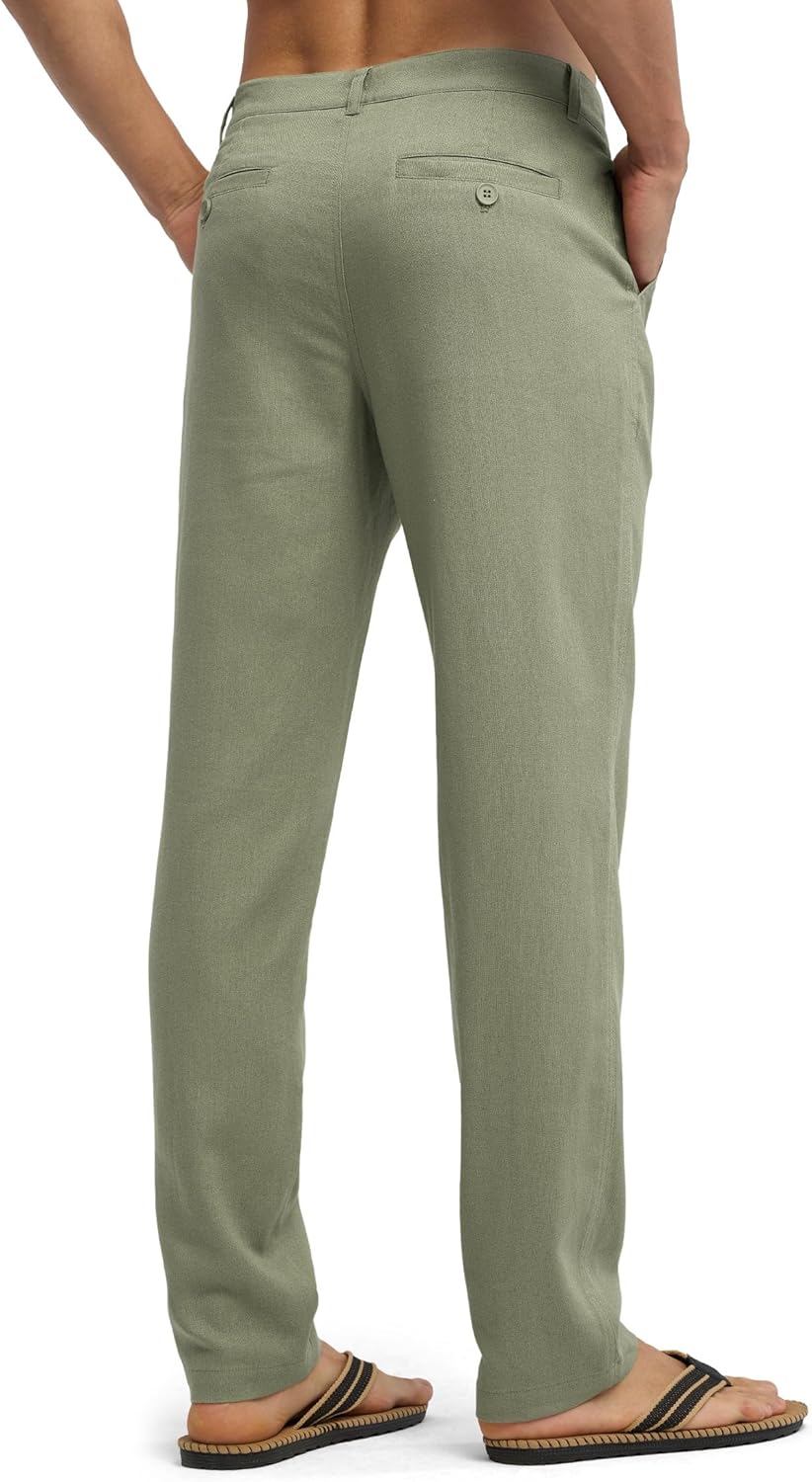 Willit Men’s Linen Pants Casual Linen Dress Pants Beach Summer Lightweight Trousers 28″ 30″ 32″