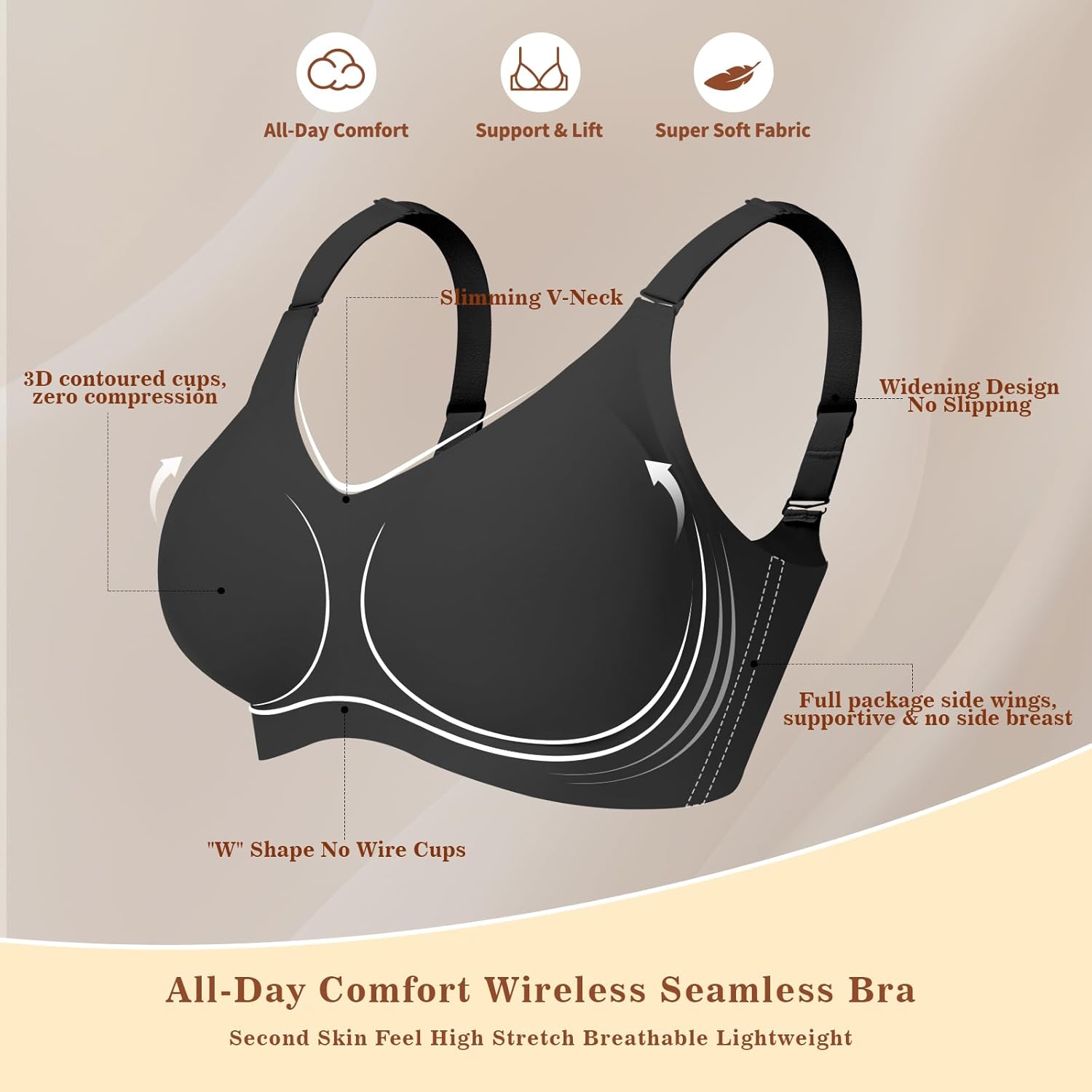 Wireless Bras for Women No Underwire Push Up Comfort Soft Bra Seamless Supportive Full Coverage Everyday Bras