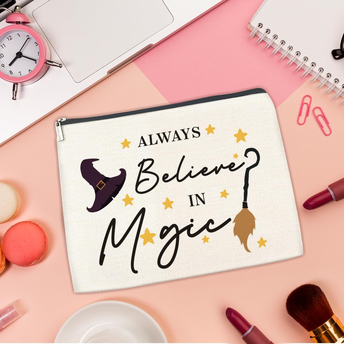 Witchy Makeup Bag Always Believe in Magic Cosmetic Pouch Halloween Witchy Gifts for Women Girls Witch Lovers Wiccans, Travel Toiletry Bag, Double Sided