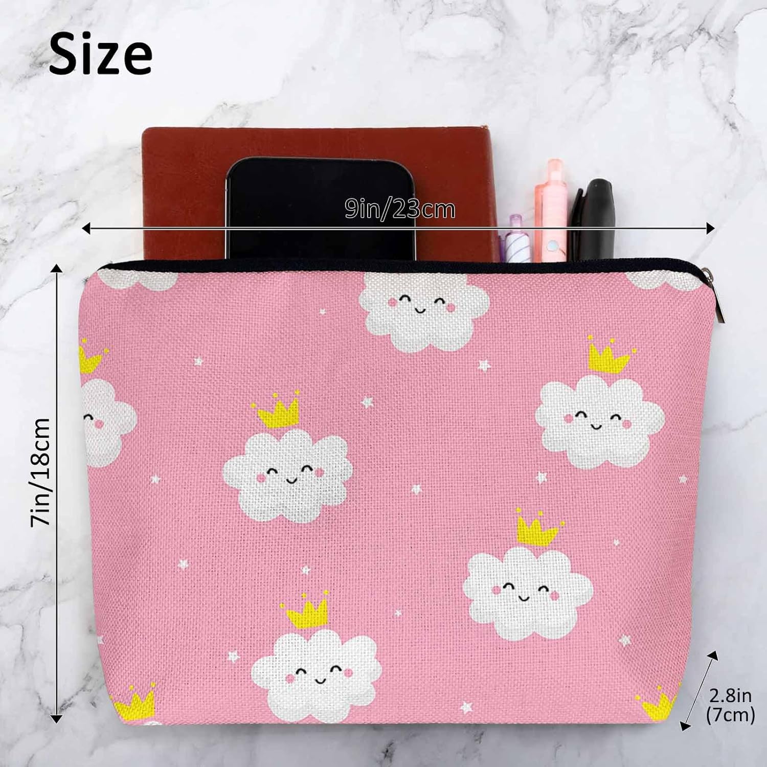 1 LARGE CAPACITY: Clouds Makeup bag size is 9 x 7.1 inch/ 23 x 18 cm. The cosmetic bag is roomy and large enough to hold all your daily essentials; portable, placed in your handbag or suitcase