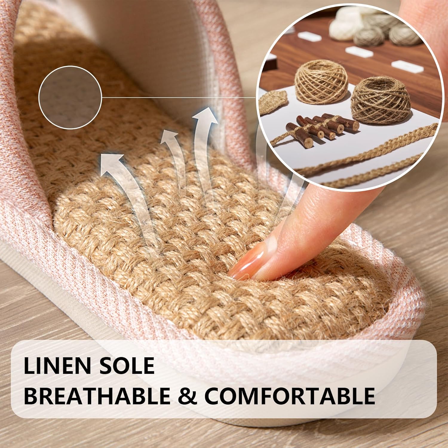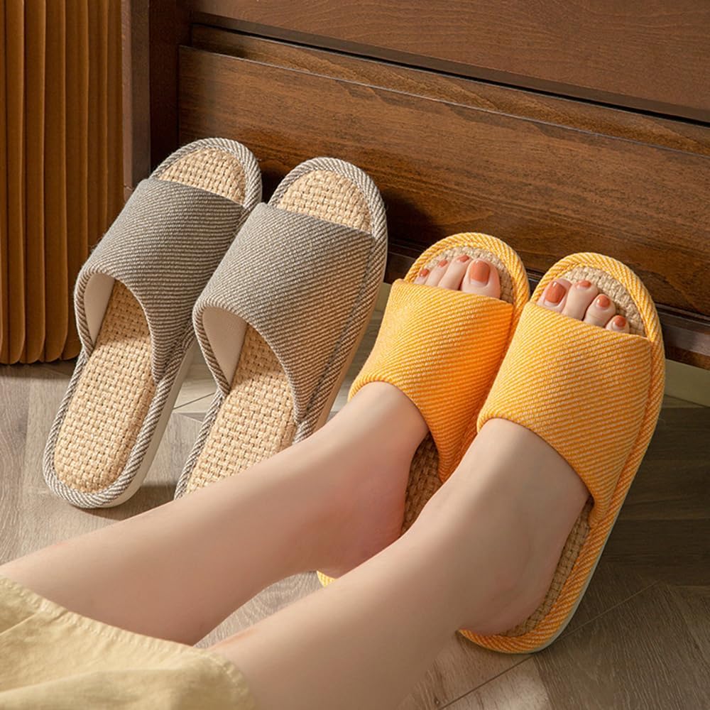 Women And Men House Fabric Slippers Indoor And Outdoor, Non-Slip Memory Foam Open-Toe Home Shoes, Soft Bottom Linen Unisex Washable Cotton Casual