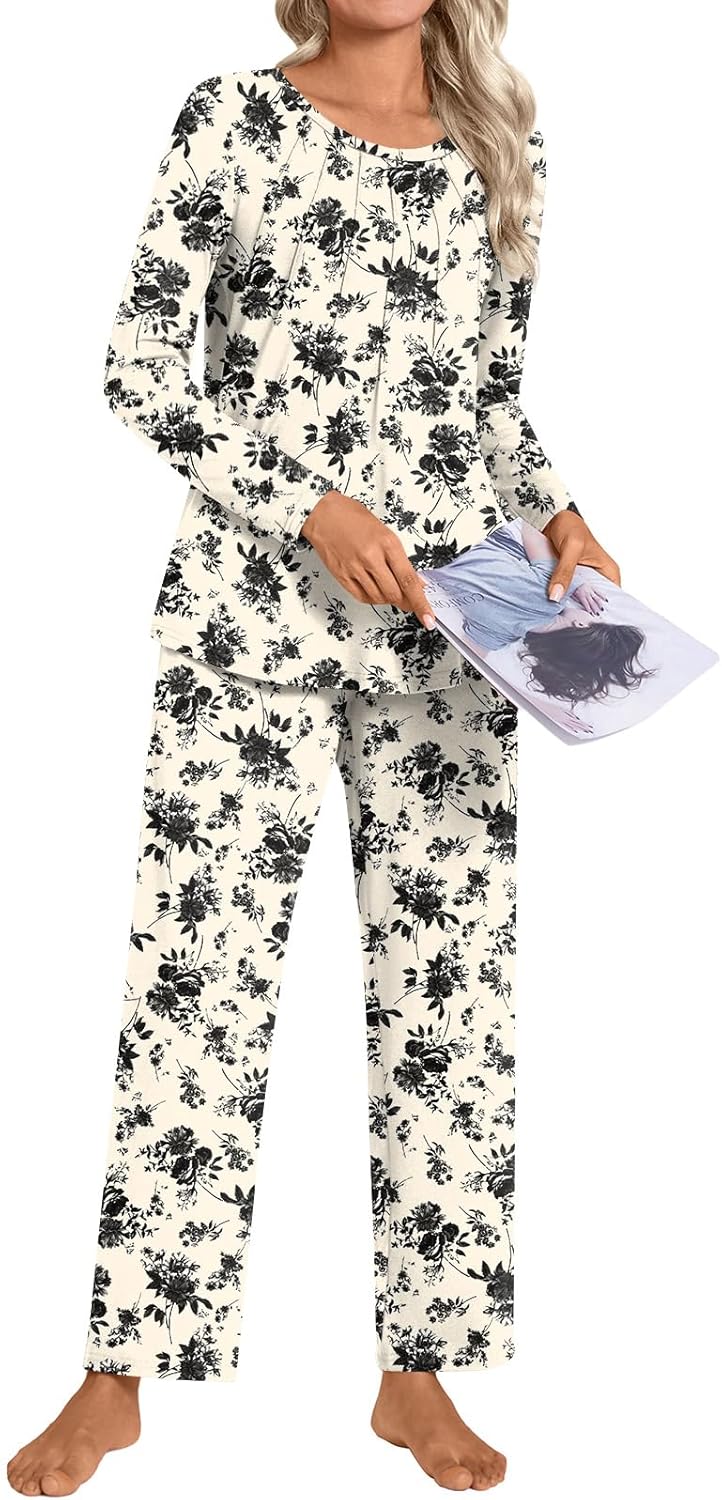 Pajamas Sets for Womens Comfy Long Sleeve Pjs Tops and Pants Addtoo Women's Fall SleepwearAddtoo Women's Fall Sleepwear
