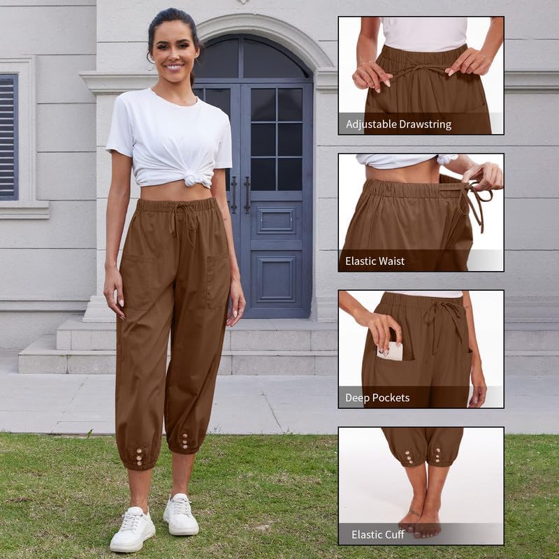 [Easy to Match] This ladies plus size pants is a great match for clothes. You can pair this cotton baggy cropped pants with short T-shirts, variety of linen blouses sneakers or vintage sandals for a simple and generous appearance, creating a casual and comfortable summer look.