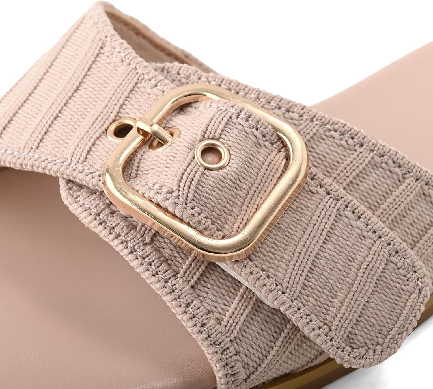 Women’s Flat Sandals Slides Slip on Square Toe Adjustable Buckle Summer Beach Dressy Shoes