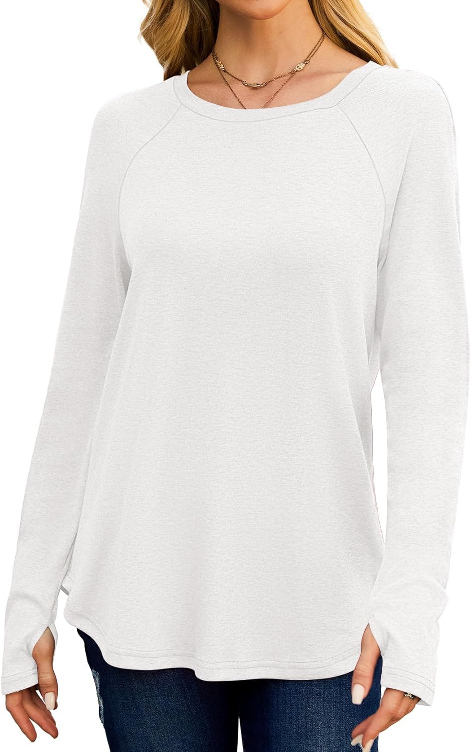 Womens Long Sleeve Tops Crew Neck T Shirts for Women Tunic Tops with Thumb Holes Fall Outfits for Women 2025