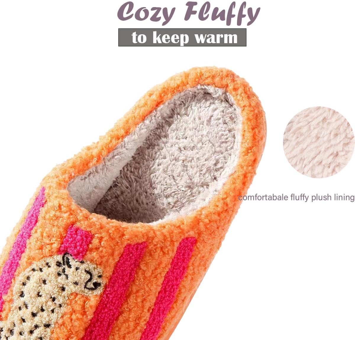 Unisex Happy Screw Lightning Happy Face Slippers Retro Leopard Print Memory Foam Soft Plush Slippers Home Shoes Halloween Slippers Christmas Slippers