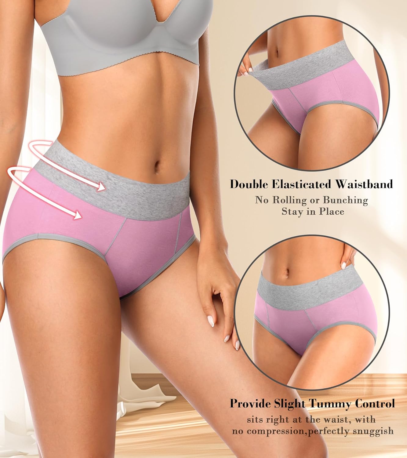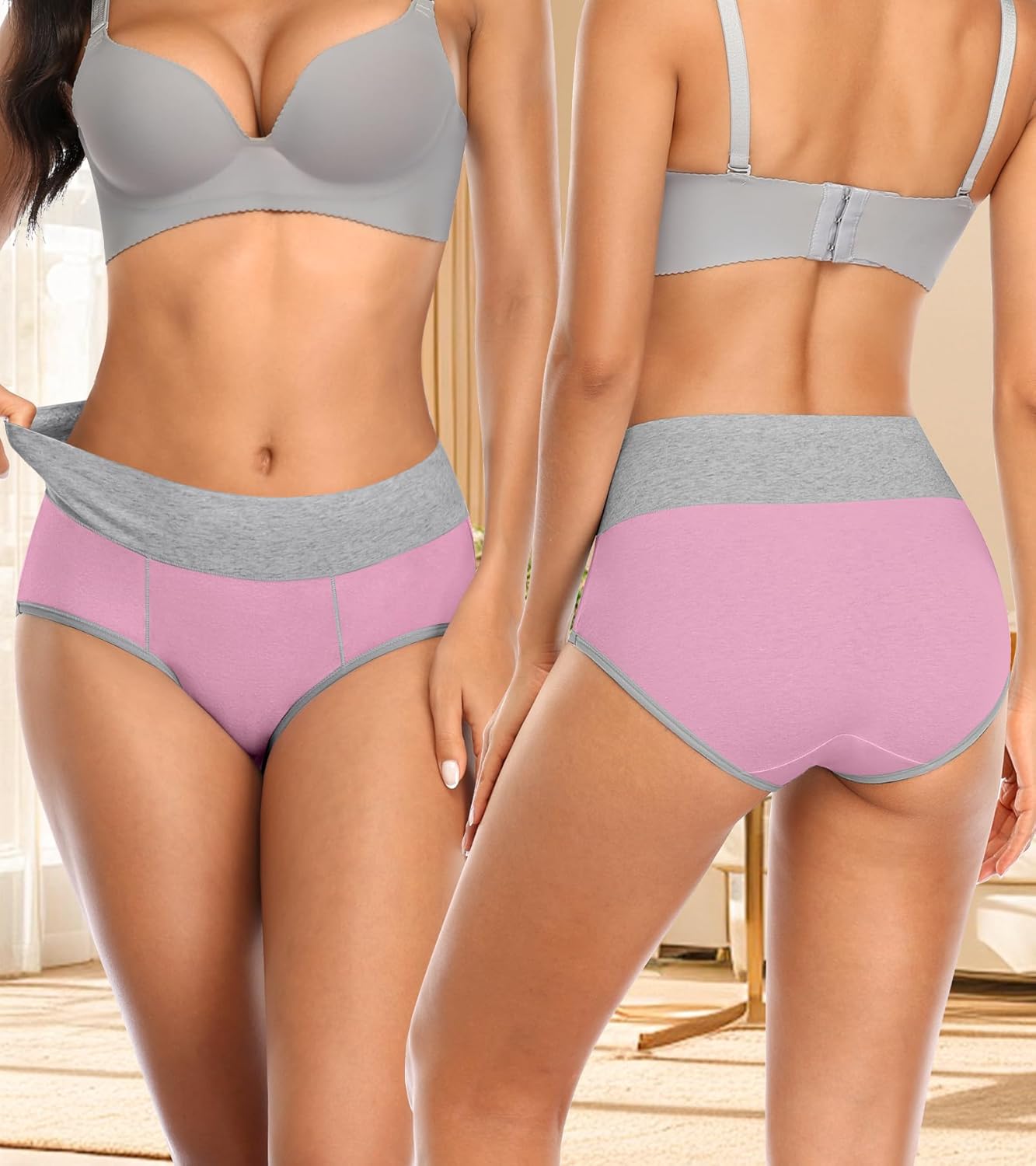 Womens Underwear Cotton High Waisted Panties Full Coverage Soft Stretch Briefs Multipack