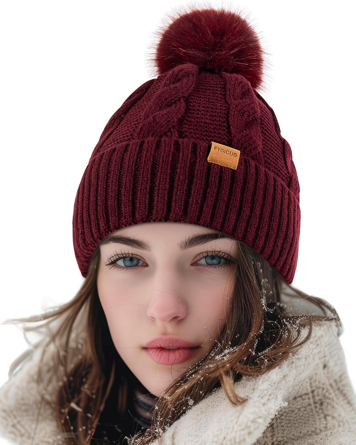 Women’s Winter Beanie Warm Hat with Pom Pom,Thermal Fleece Lined Knit Cap, Thick Cable Slouchy Soft for Ski Cold Weather