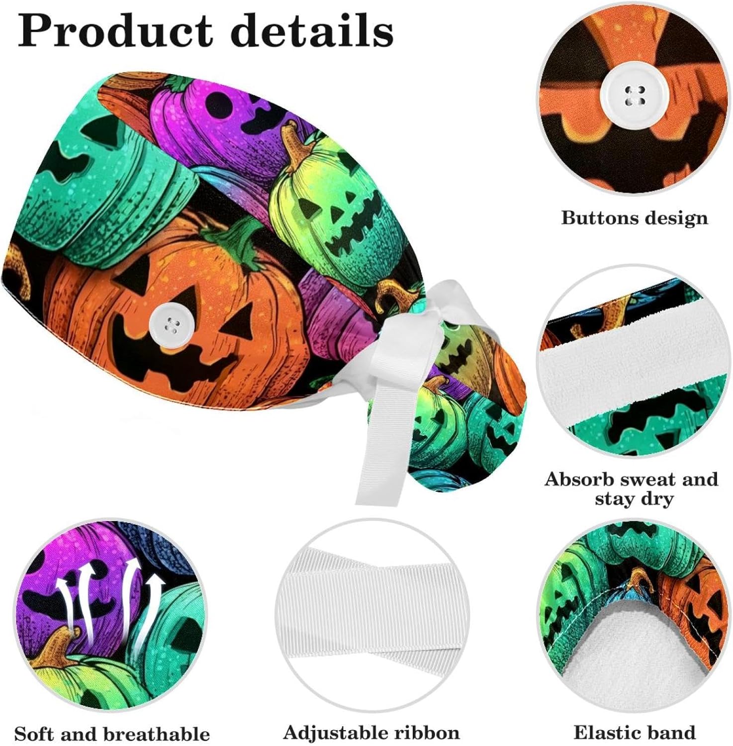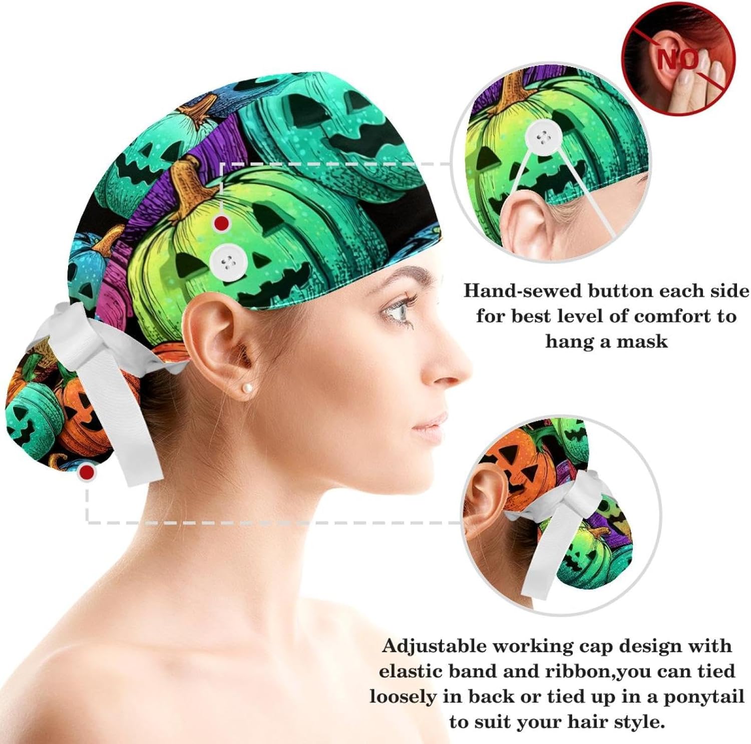 * Working Cap with Buttons: Scrub caps with button around ear side that you can avoid the straps on sides to make your ears hurt.