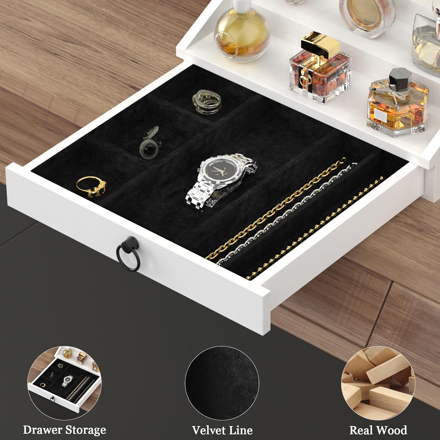 Wooden Cologne Organizer for Men Enhanced 5 Tier Cologne Stand Shelf Perfume Organizer with Velvet Lined Drawer & Hidden Storage Perfume Display Holder for Dresser Nice Gift (Elegant White)