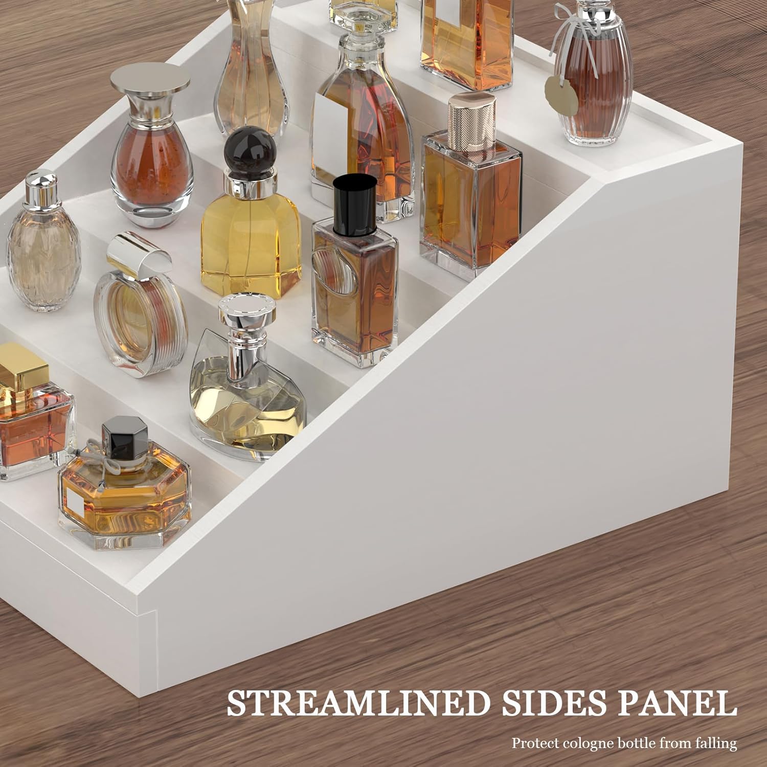 5 Layered Wooden Cologne Stand: upcessory cologne organizer adopts a 5-tier classification,capable of holding multiple perfume bottles.Each tier panel features side anti-fall design, making it the perfect to keep more perfume in order