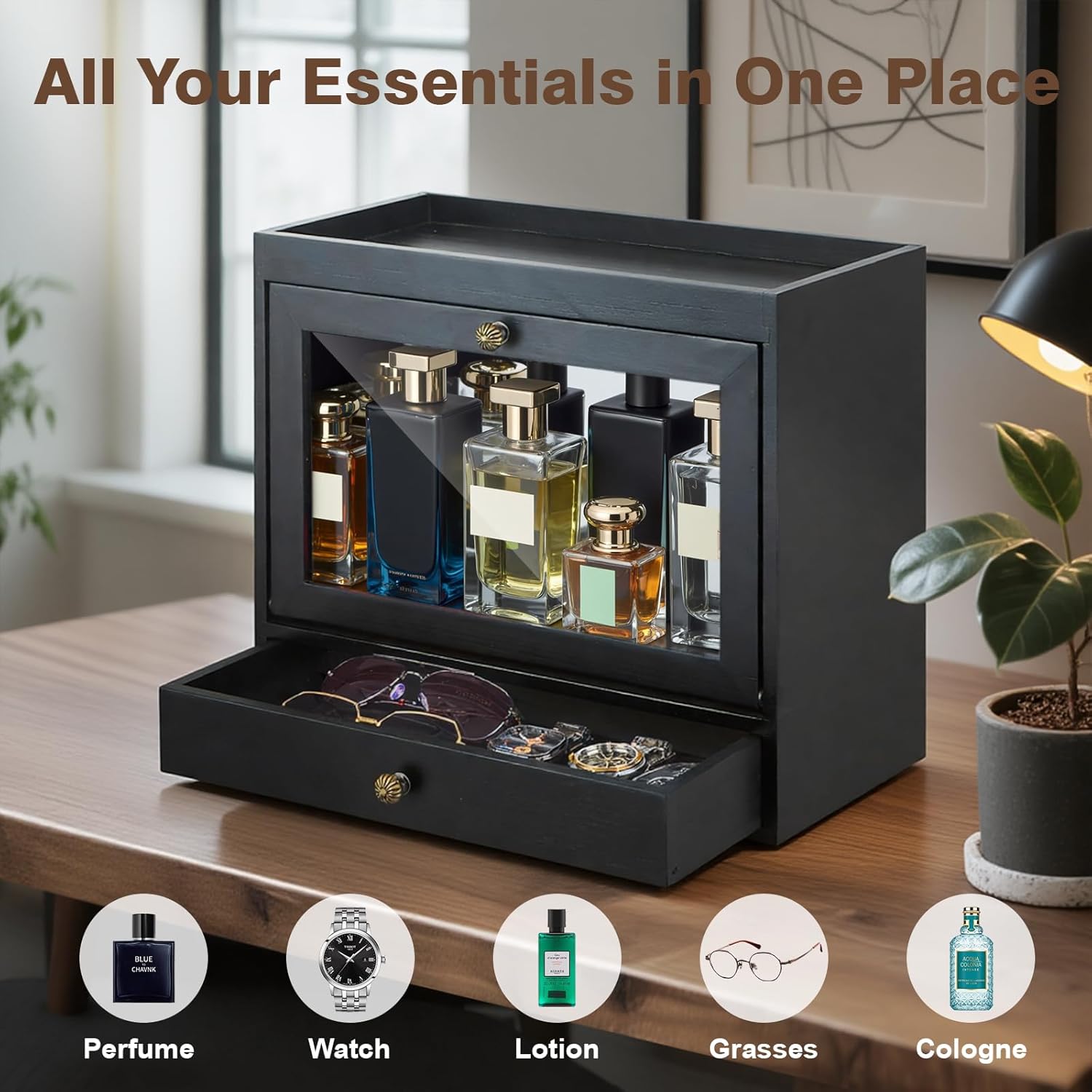 【Spacious Drawer for Accessories】Keep everything in one place — store watches, sunglasses, keys, or rings in the lower drawer while your favorite scents sit beautifully on display above.
