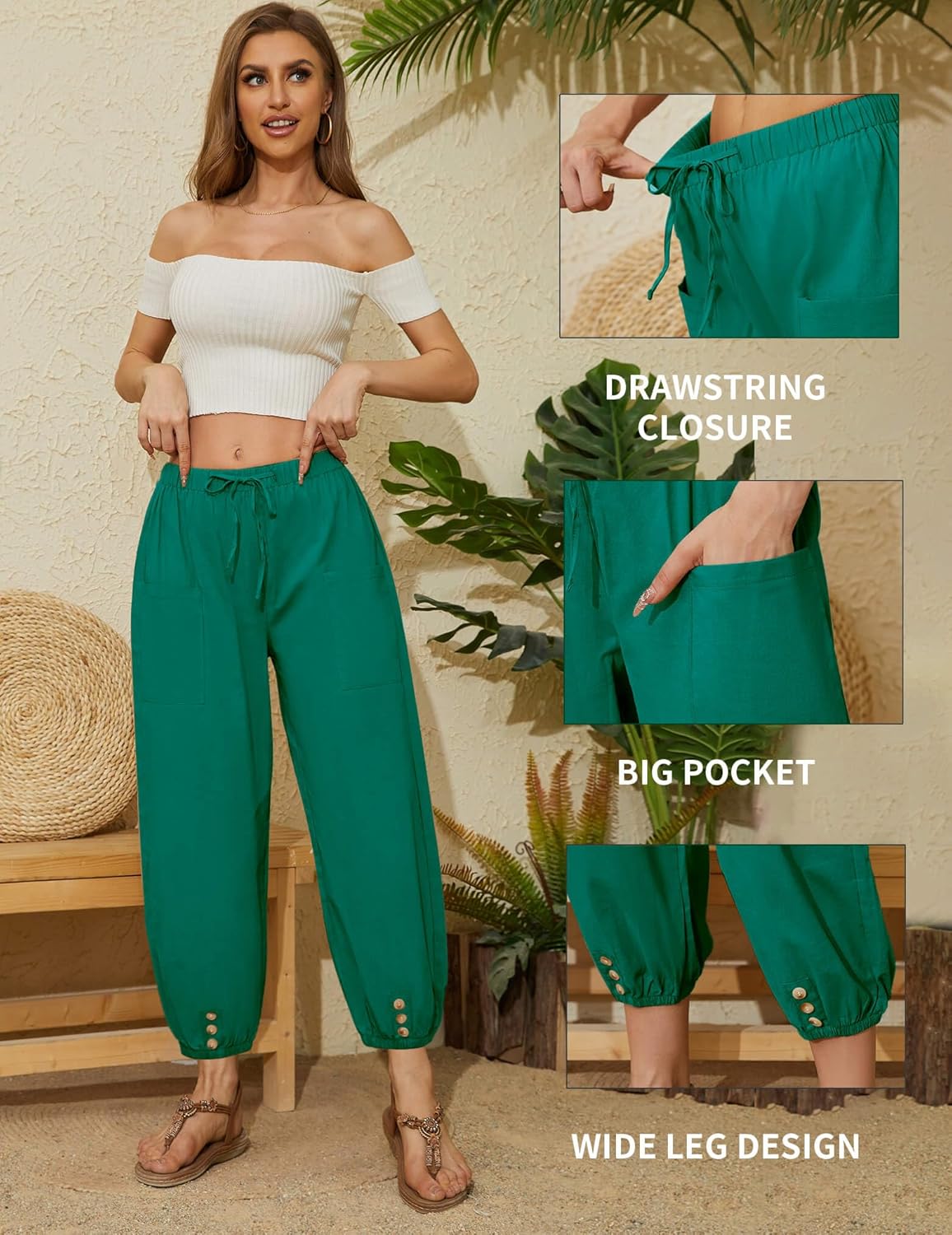 WROLEM Women Capri Pants Casual Drawstring Elastic High Waist Baggy Wide Leg Cropped Pants Trousers for Ladies Summer