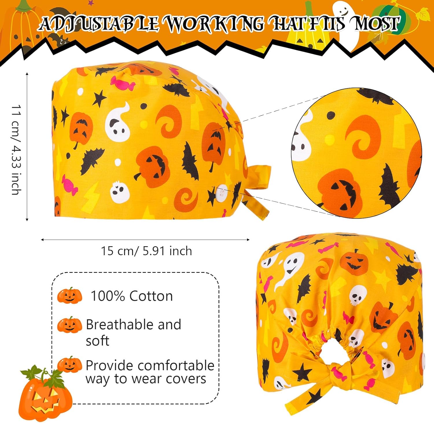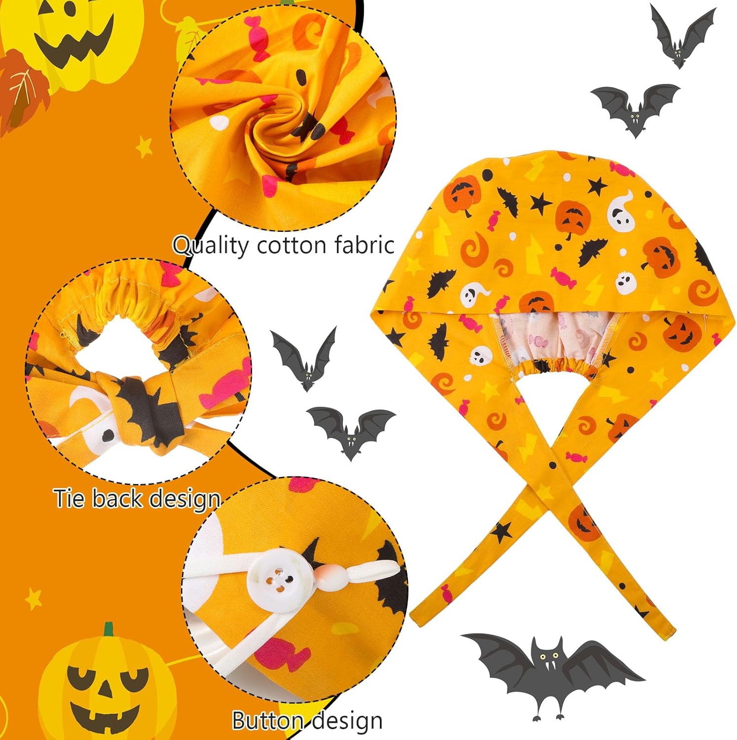 The Halloween scrub cap women adopts many Halloween elements like spider, pumpkin, candy and more, colorful and appealing, which will add more fun to your costume and parties.