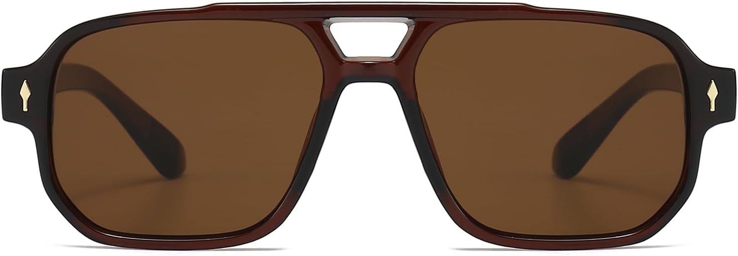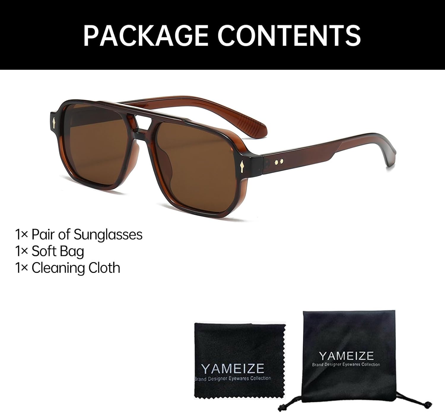 YAMEIZE Pilot Double Bridge Rectangle Sunglasses – 70s Retro Classic Square Eyewear UV400 Protection Driving for Women Men