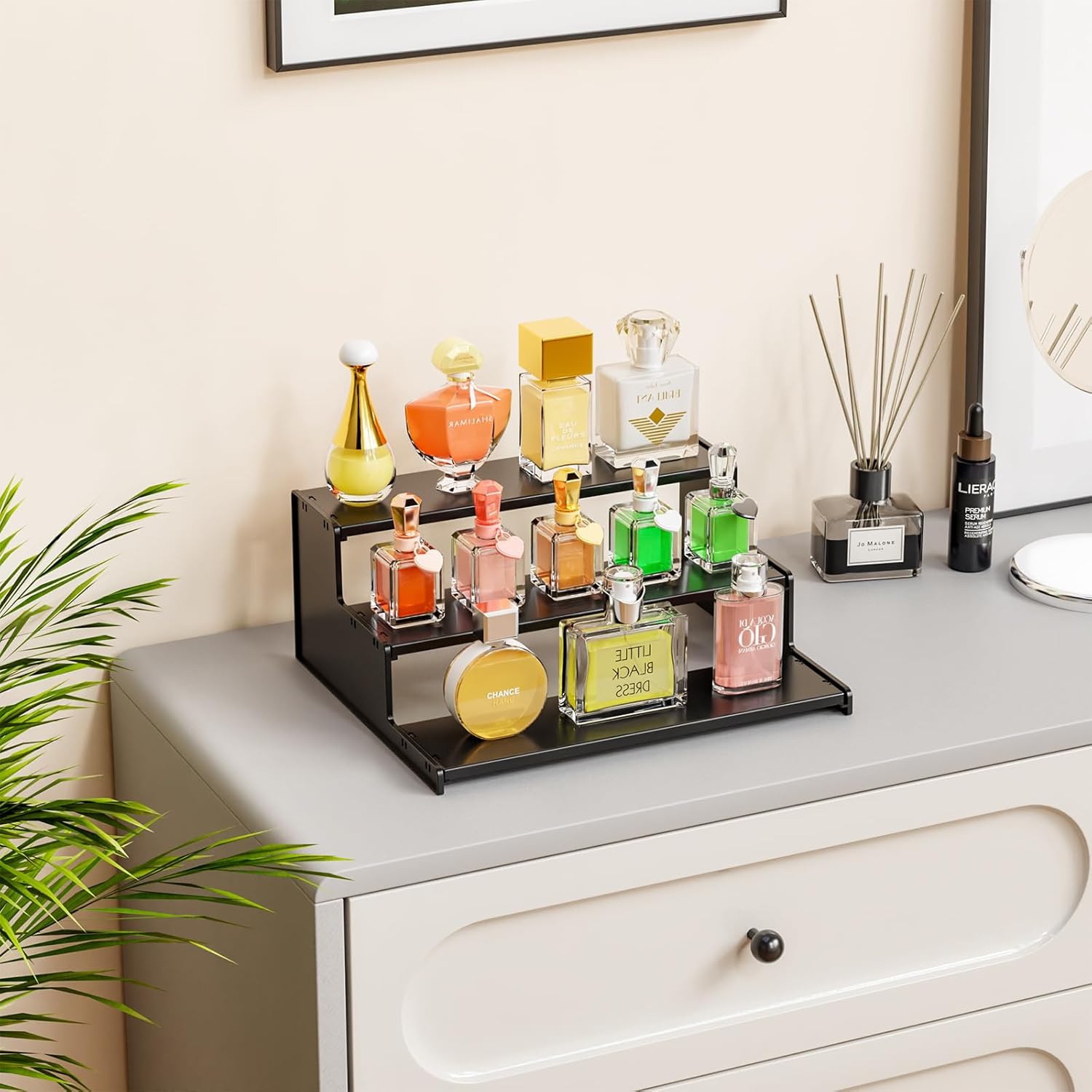 Space Conserving: The steps design of this perfume organizer maximizes vertical space on your desktop or countertop. Different layer heights highlight your statues, perfumes, nail polishes, or skincare products,Very suitable as cupcake holder,cupcake stand,perfume stand,perfume organizer for women,dessert stands,perfume holder,risers display stands,perfume display,cup cake stand,display rack,cookie trays for parties,cakepop stand display,perfume shelves,figurine display