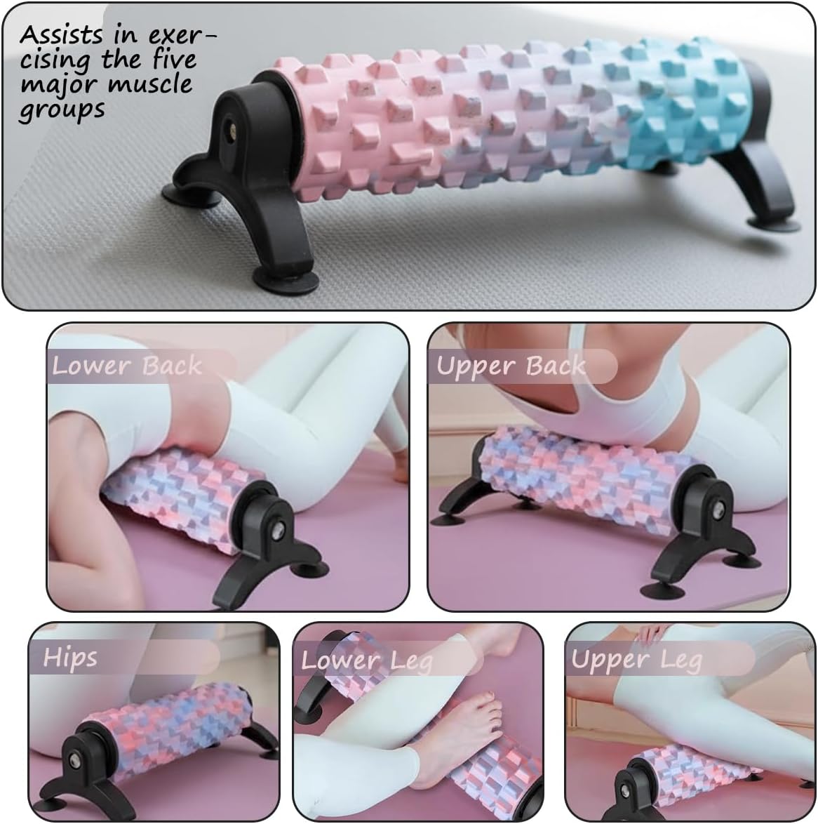 Targeted Back Pain Relief & Deep Tissue Massage:Our medium-density back roller is expertly designed to ease muscle soreness and release tension in your back, neck, and shoulders. The textured bumps penetrate deep into soft tissue and fascia, effectively breaking up knots and providing acupressure-like relief—ideal for post-workout recovery or soothing chronic back pain. Unique Non-Slip Support Frame – Stays in Place:Unlike other back rollers that shift or roll away during use, ours features a built-in stabilizer frame for secure, hands-free control. This innovative design ensures the roller stays exactly where you need it, making it easier and safer to target tight muscles—perfect for yoga stretches, beginners, or use in limited spaces. Enhanced Stability for Deeper, Safer Stretching:The fixed support frame offers superior stability compared to standard foam rollers, allowing you to maintain balance and apply consistent pressure without slipping. Whether you’re stretching after a run or easing lower back stiffness, this back roller delivers a more effective and controlled massage experience. Medium-Density & User-Friendly for All Skill Levels:Crafted from durable, eco-friendly EVA foam, this back roller offers the perfect balance of firmness and comfort. It’s strong enough to massage muscles along the spine without causing bruising—making it suitable for those with sensitive muscles or anyone new to foam rolling. Versatile & Portable Muscle Recovery Tool:Ideal for athletes, office workers, and yoga enthusiasts, this back roller helps improve flexibility, speed up recovery, and reduce injury risk. Use it at home, in the studio, or on the go for quick relief in the back, legs, calves, and shoulders—all backed by a sturdy design that supports up to 400 lbs.