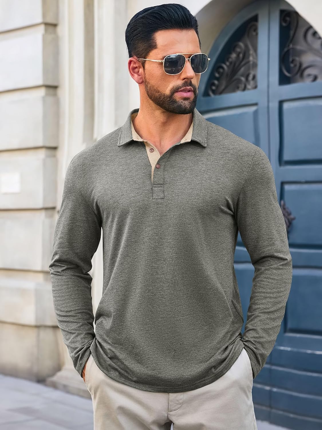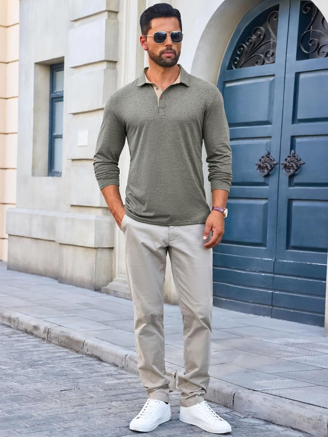 Mens Long Sleeve Polo Shirts Casual Basic Collared Lightweight Golf Shirts