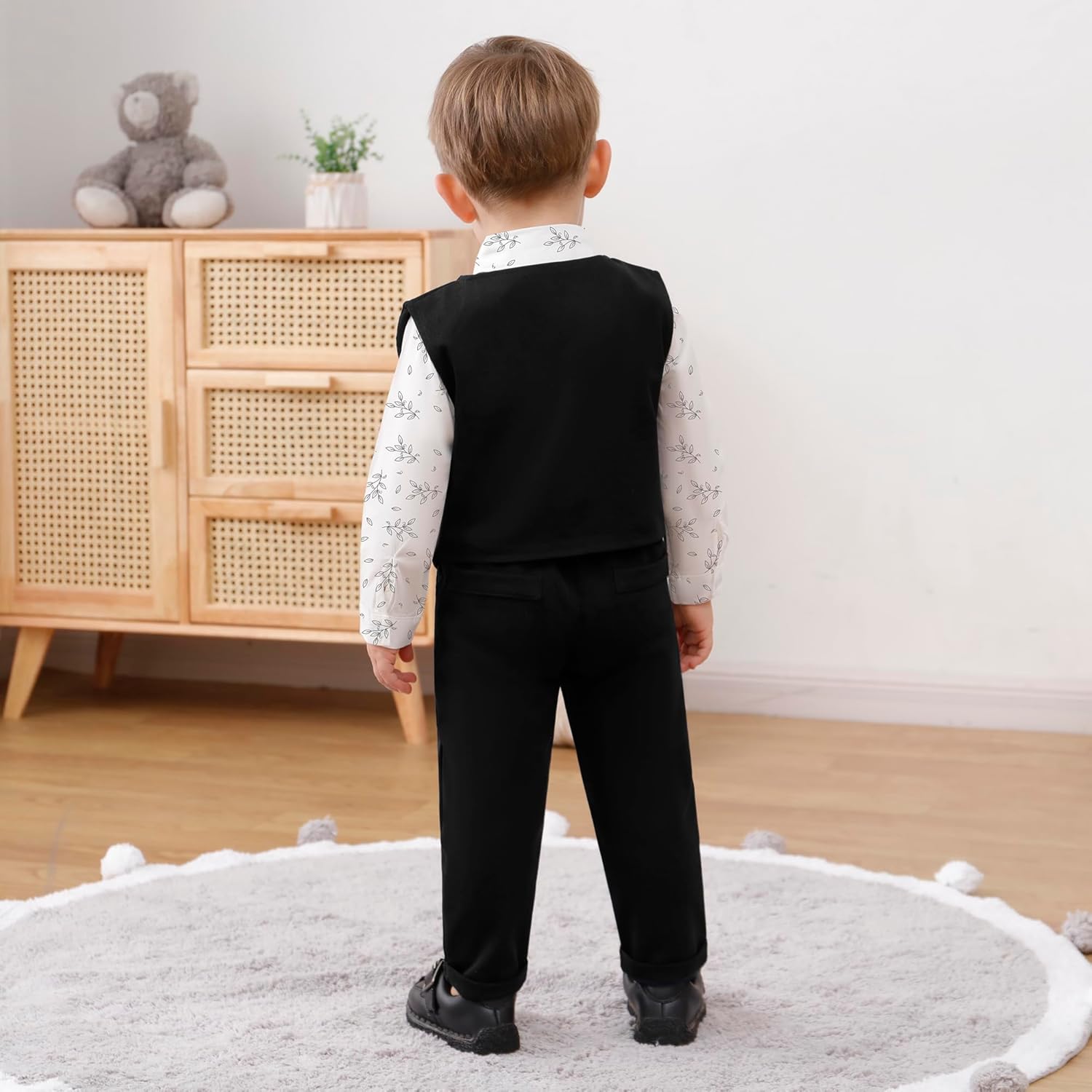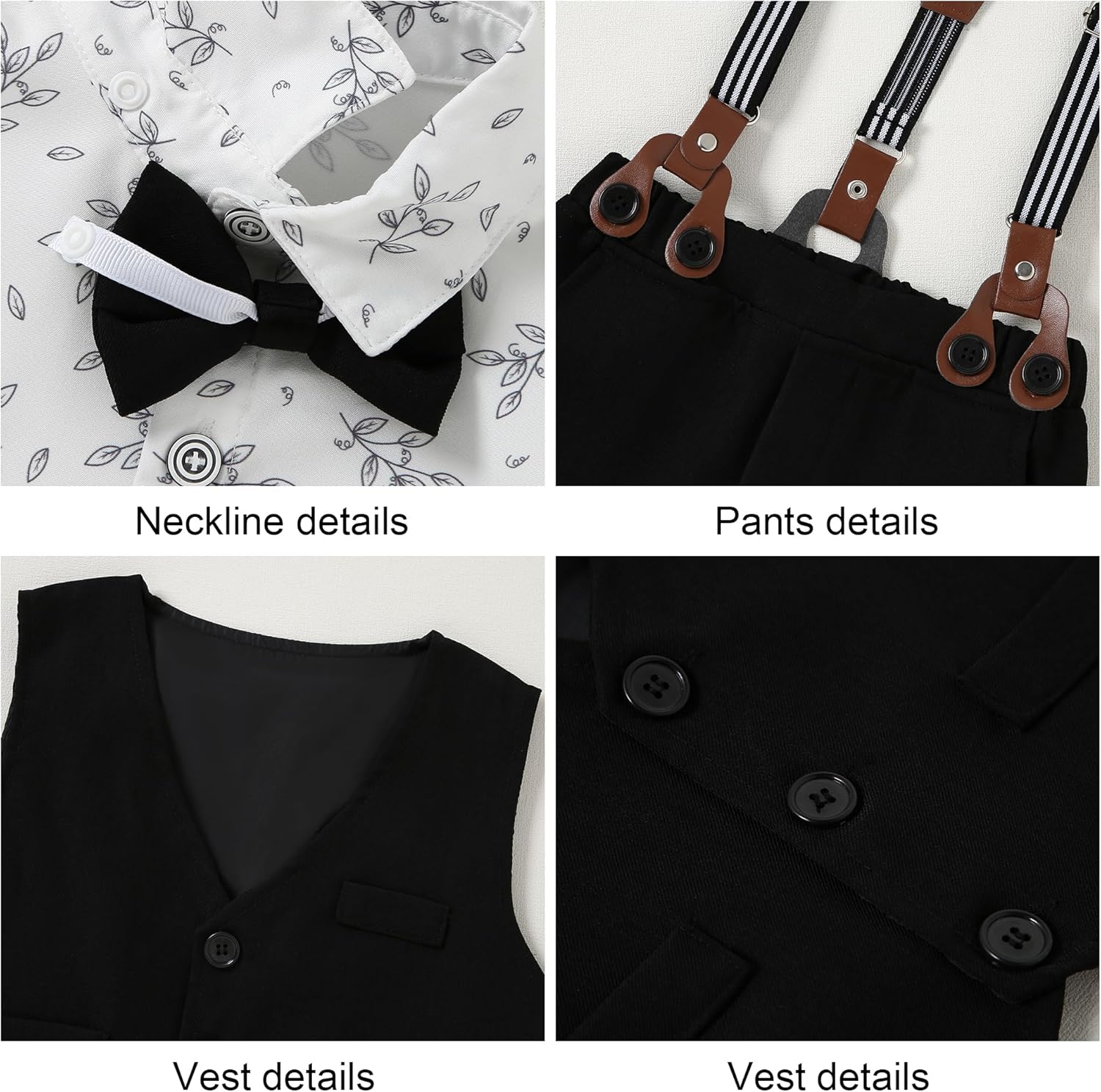 YUEMION Toddler Baby Boy Clothes Suits Gentleman Dress Shirt+Bowtie+Vest+Suspender Pants Boy Formal Wedding Outfits Set 1-5T