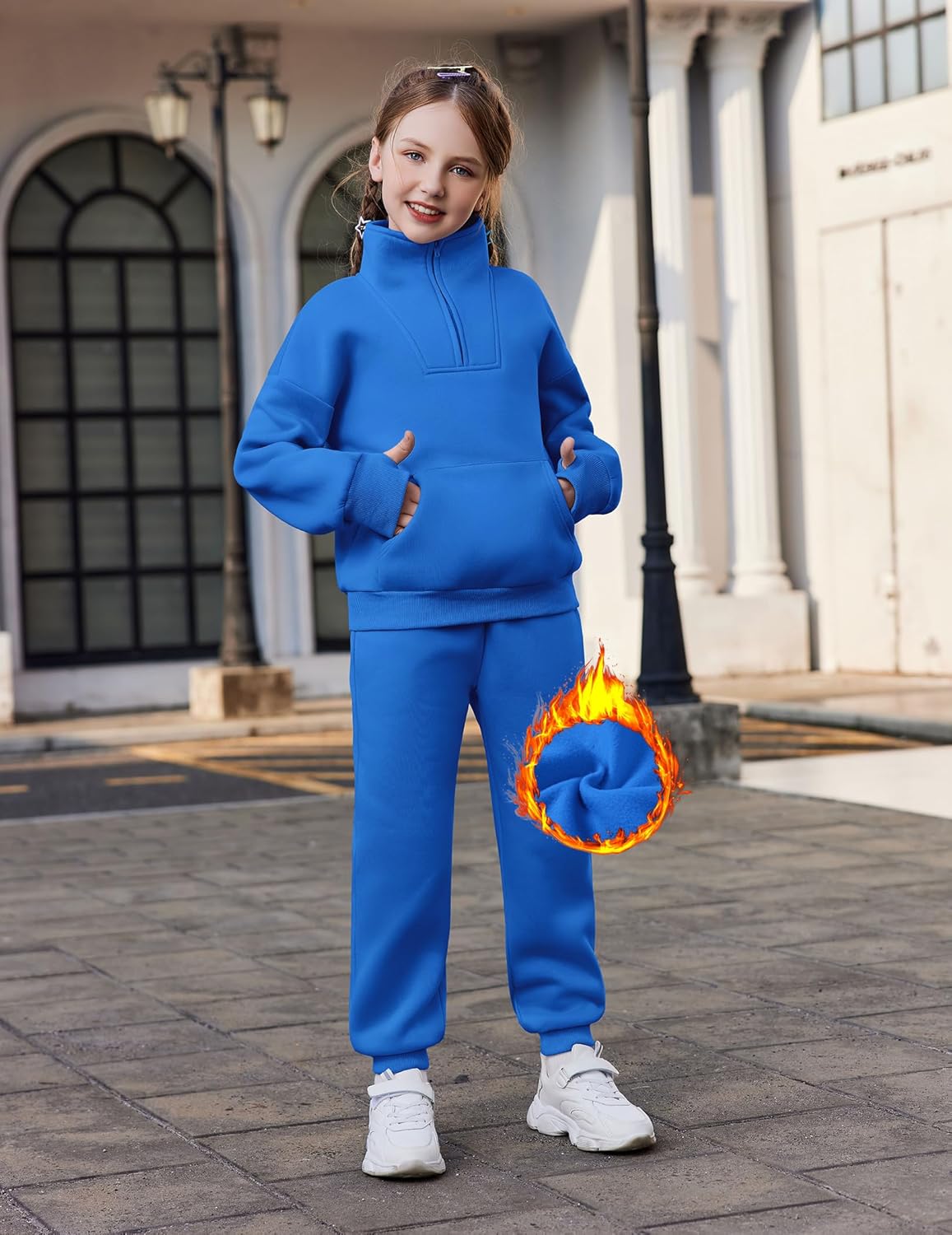 Zaclotre Girls Sweatsuit 2 Piece Outfits Fall Winter Fleece Half Zip Thumb Hole Sweatshirts and Sweatpants Joggers Set