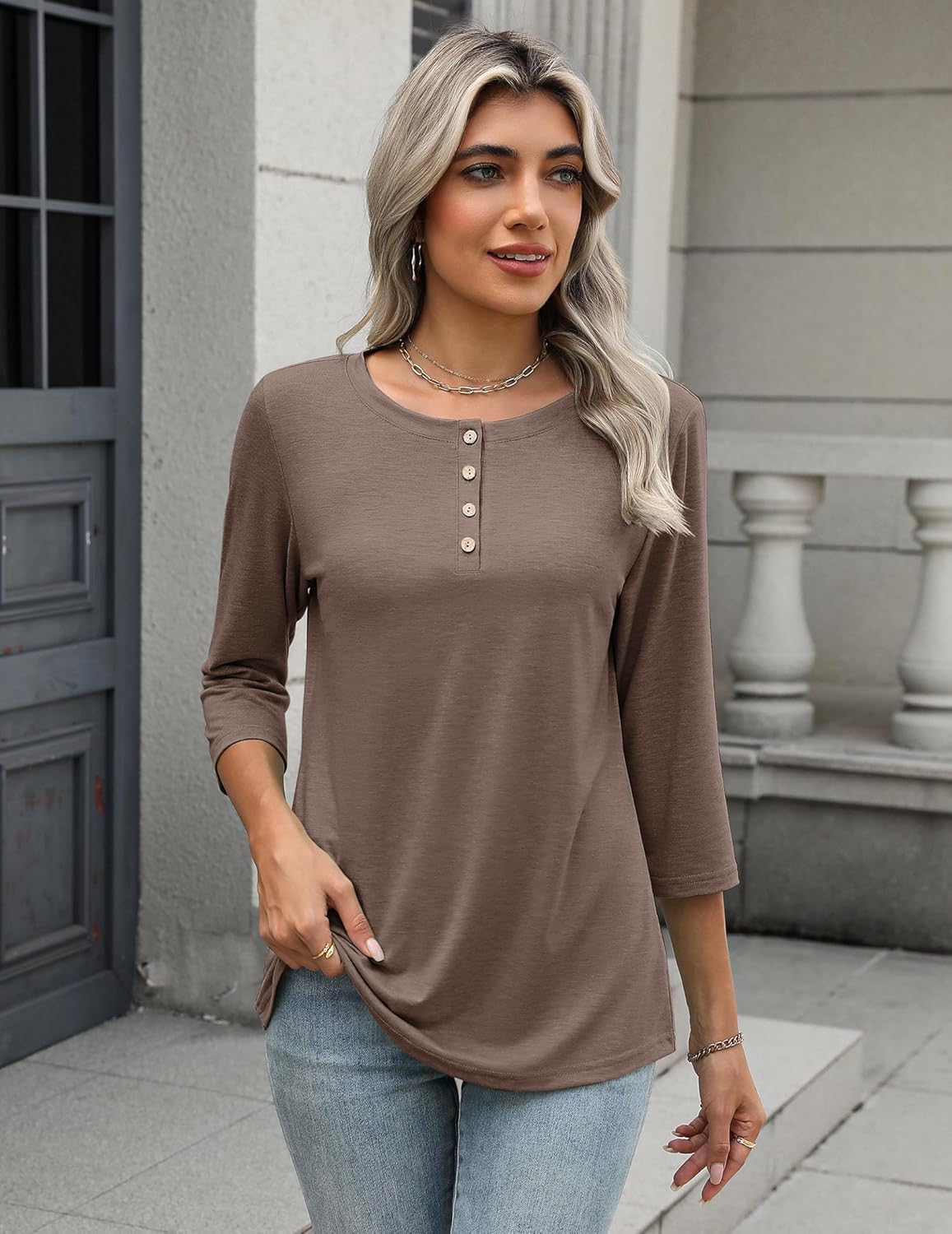 Zeagoo Womens Tops 3/4 Length Sleeve T Shirts Dressy Casual Button Down Blouses Spring Fall Clothes