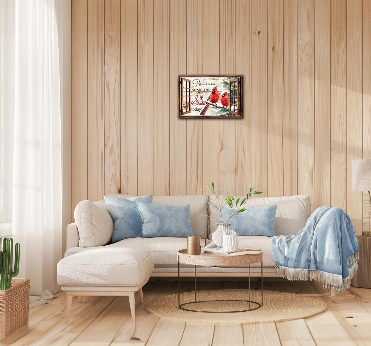 Zhefoart Be The Reason Someone Smiles Today Quotes Poster Framed Cardinal Bird Wall Art Out The Window Scenery Poster 12×18 inches
