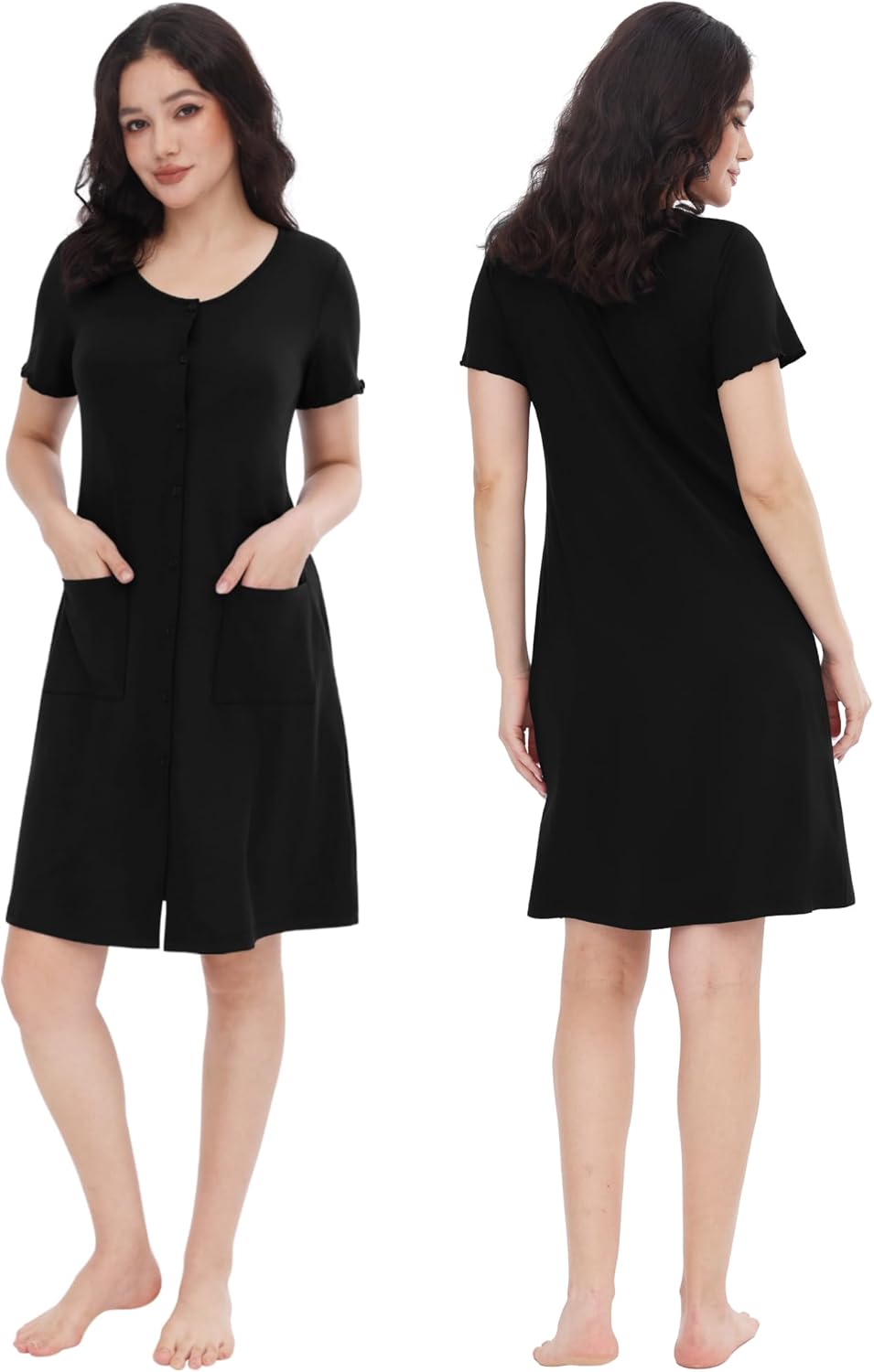 ZOOSIXX Nightgowns for Women – Short Sleeve Button Up Pajamas for Women Clothing Sleepshirts Night Gown with Pockets