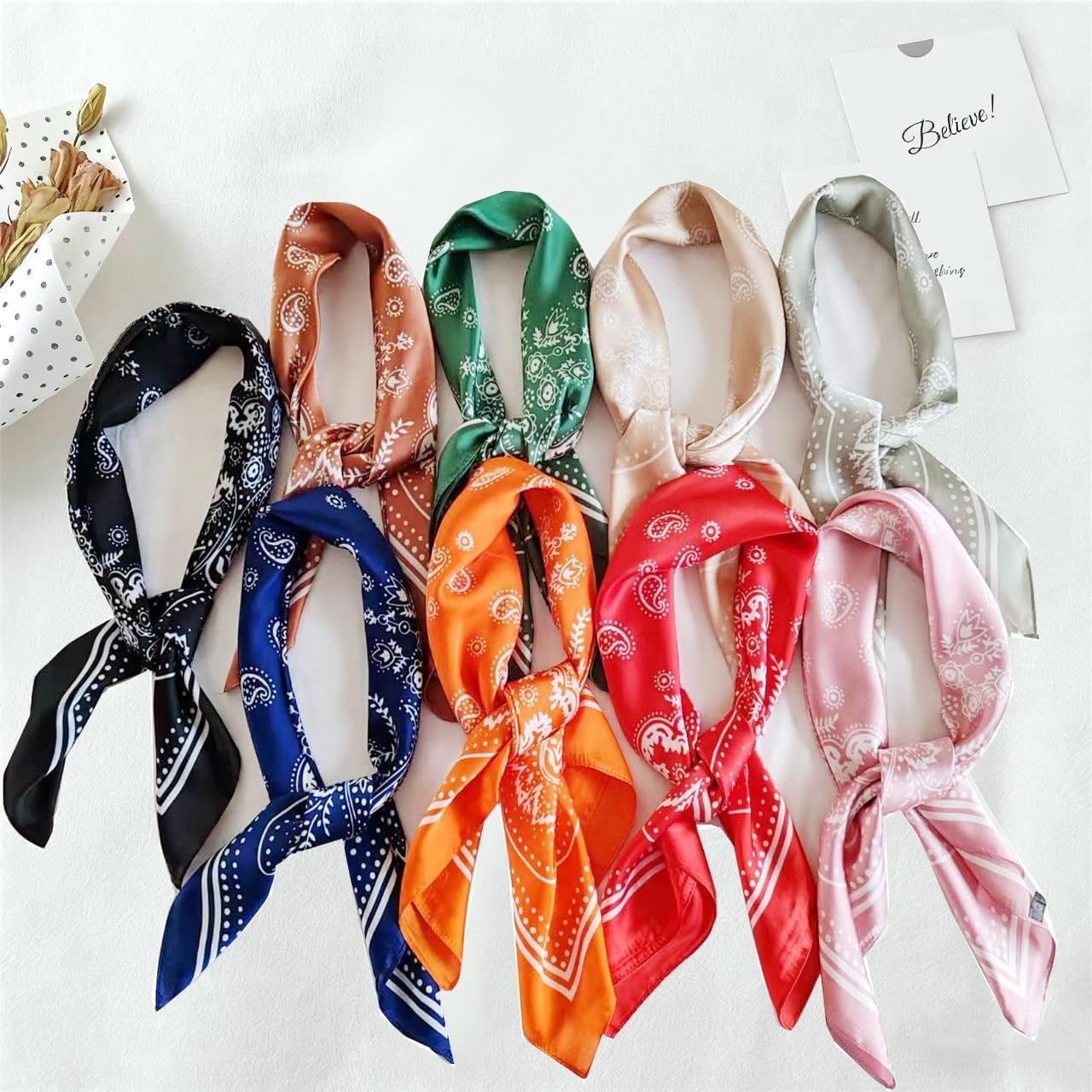 SILK LIKE HEAD SCARF FOR WOMEN SATIN SCARF FOR HAIR 27″ HAIR BANDANA FOR WOMEN